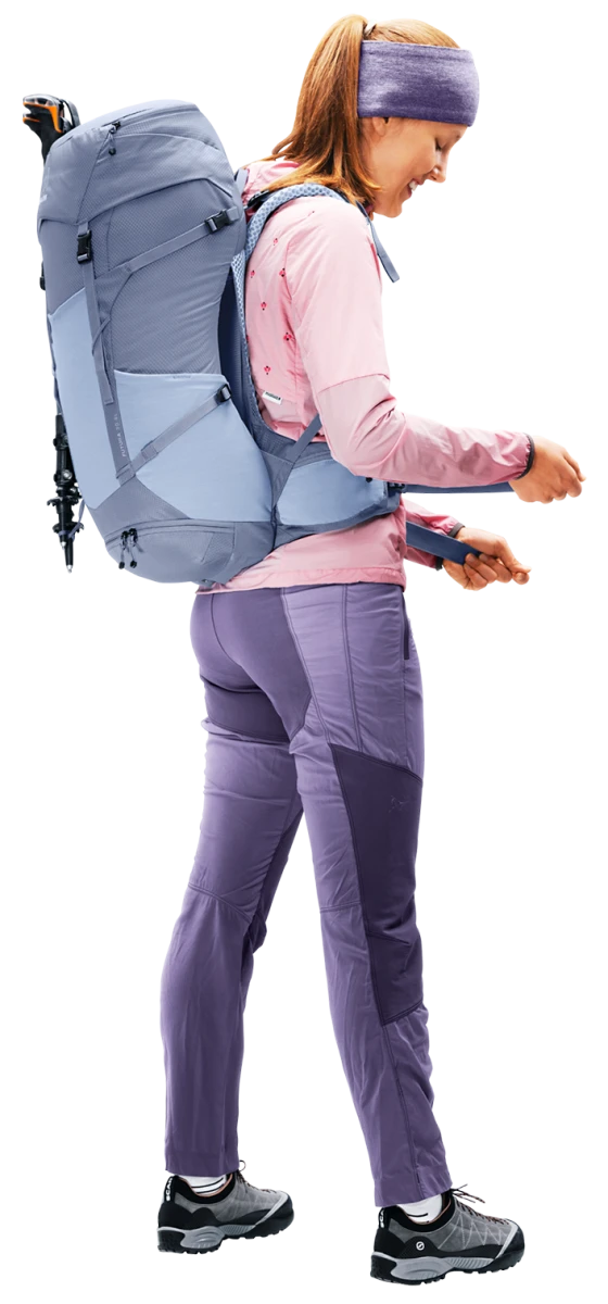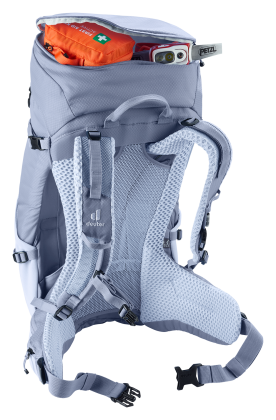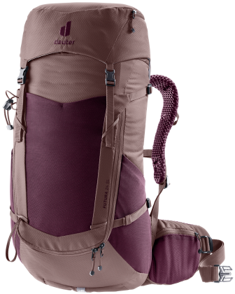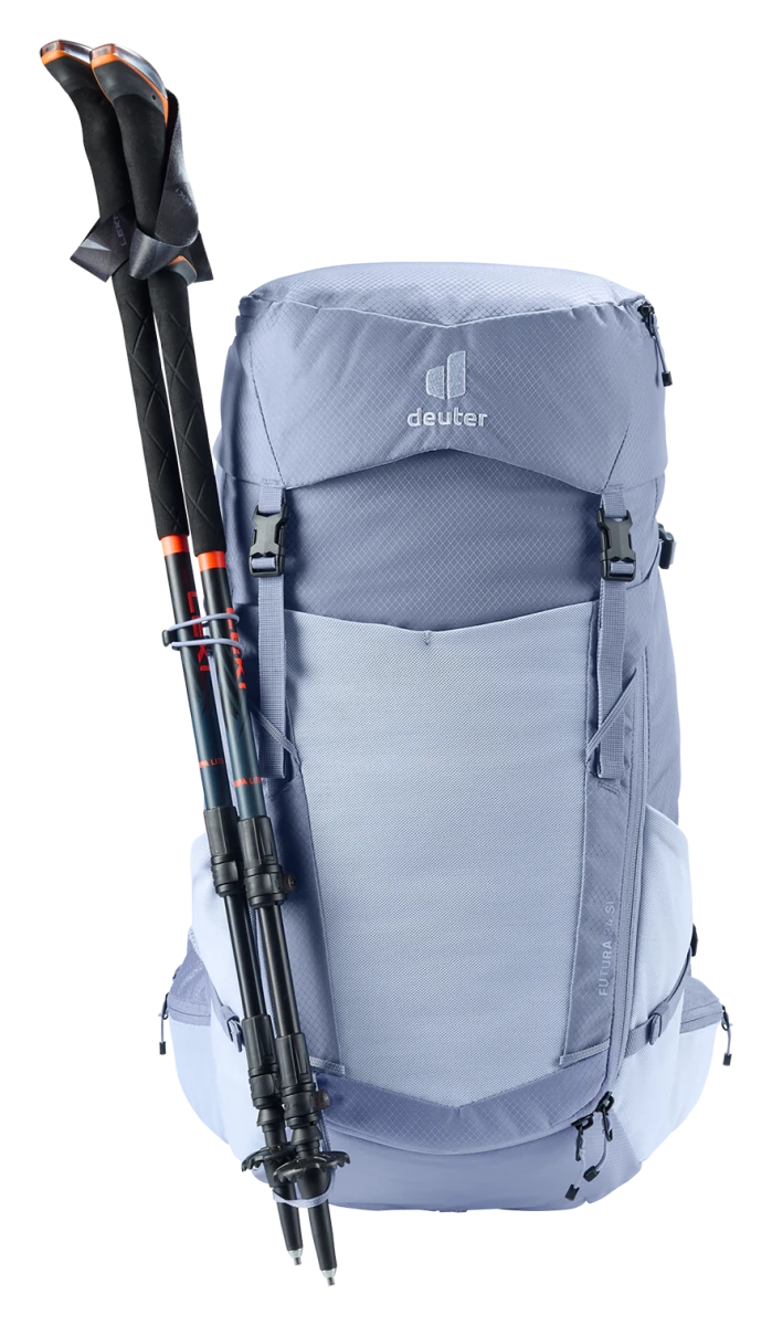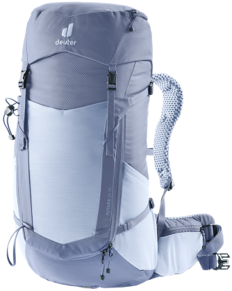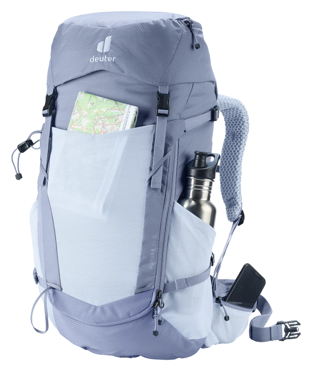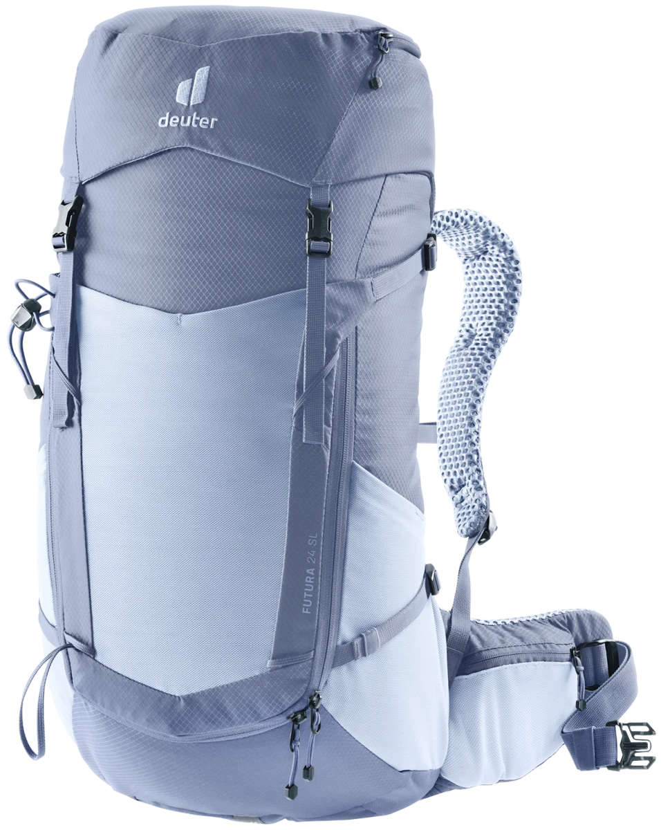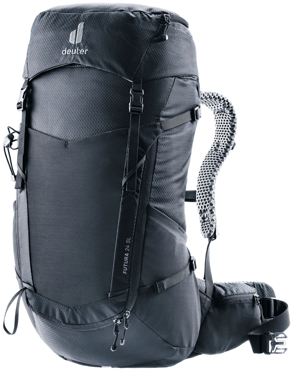Deuter Futura 24 SL: dámský turistický batoh, plnění přes šňůrku, čelní elastická kapsa na bundu. Zádový systém tvořený síťkou umožňuje dobré odvětrání zad. Batoh se hodí pro vysokohorskou turistiku, jednodenní turistiku.