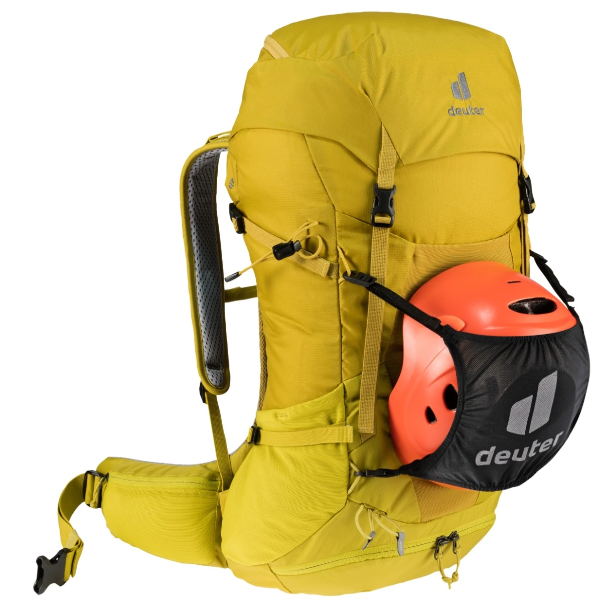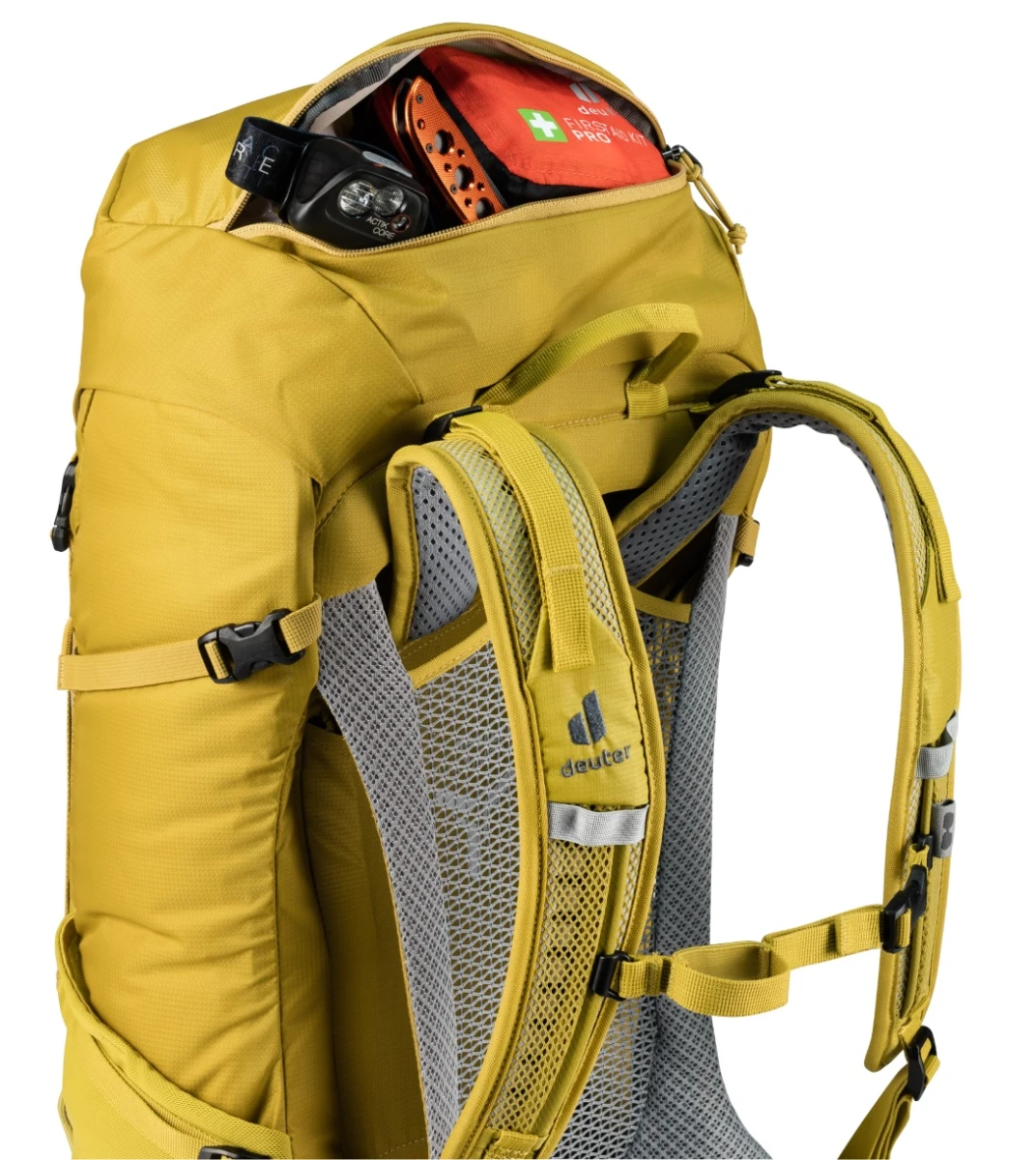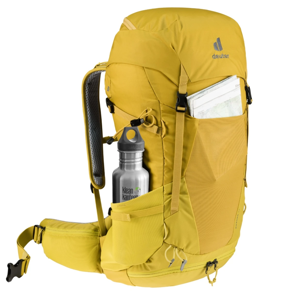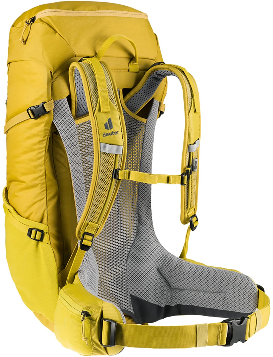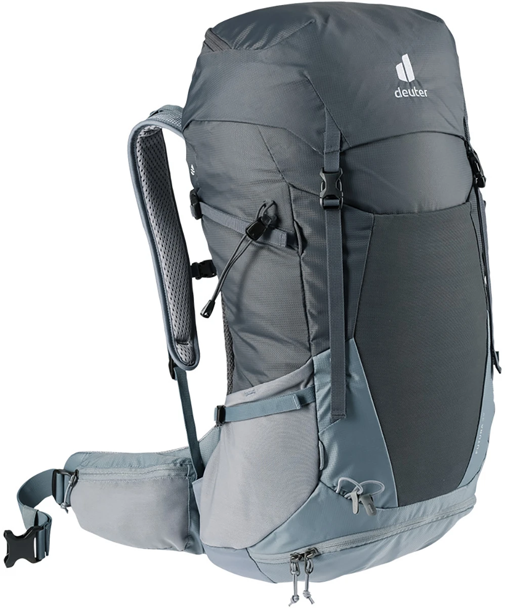 Deuter Futura 32: je jednokomorový turistický batoh o objemu 32 litrů s vrchním plněním, s bočními pružnými kapsami na láhve nebo drobnosti a skládanými bočními kapsami. Zádový systém Aircontact je tvořeným síťkou, který umožňuje výborné odvětrání zad - méně se vám potí a lépe schnou i s nasazeným batohem.