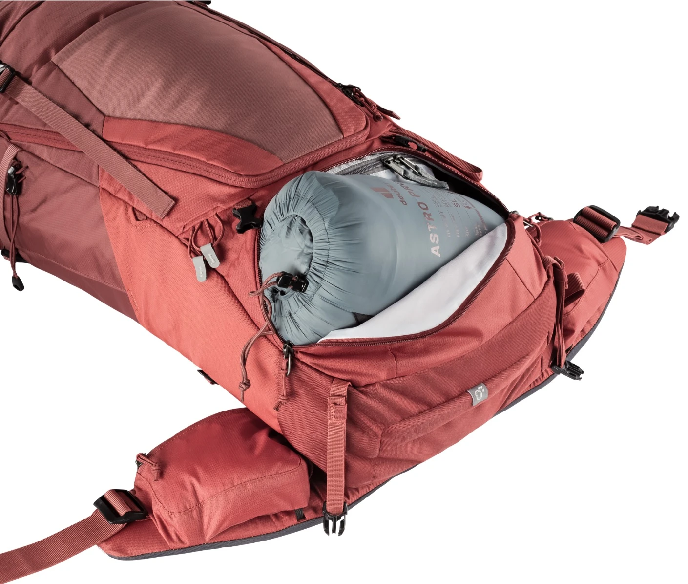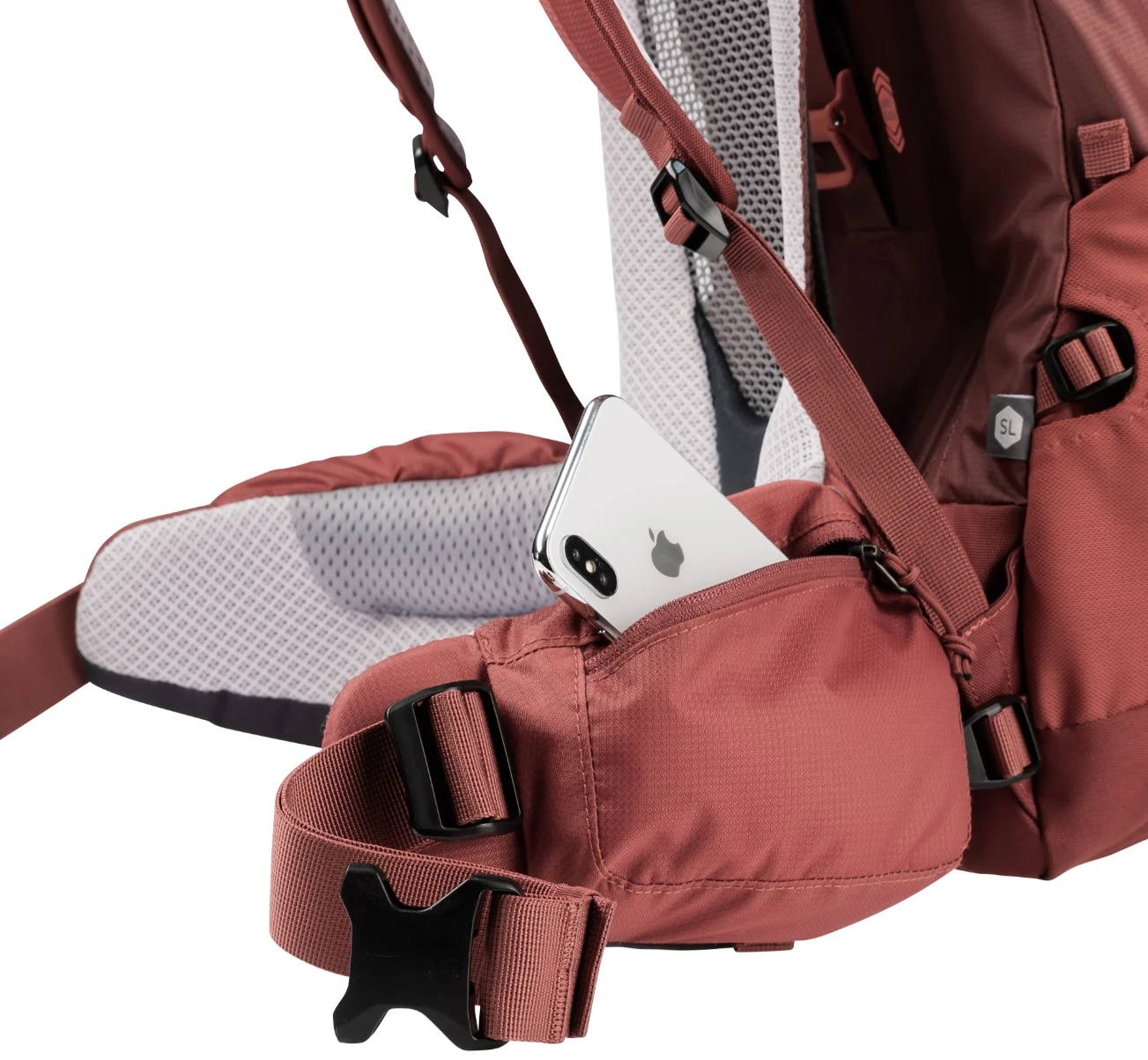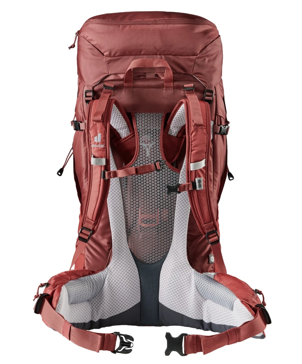Deuter Futura Air Trek 45+10 SL: dámský turistický batoh střední velikosti je vysoce prodyšný a zároveň velmi pohodlný. Má objem 45+10 litrů, takže vám poskytne celkový objem až 55 litrů. Je tak ideální na všechny vaše výpravy do hor na několik dní, a to i v letních měsících. Batoh byl navržen speciálně pro ženy, takže tu najdete kratší zádový systém se síťkou, který lze podle potřeby jednoduše nastavit. Užší ramenní popruhy jsou polstrovány ergonomickými vložkami, které se postarají o rozložení váhy.