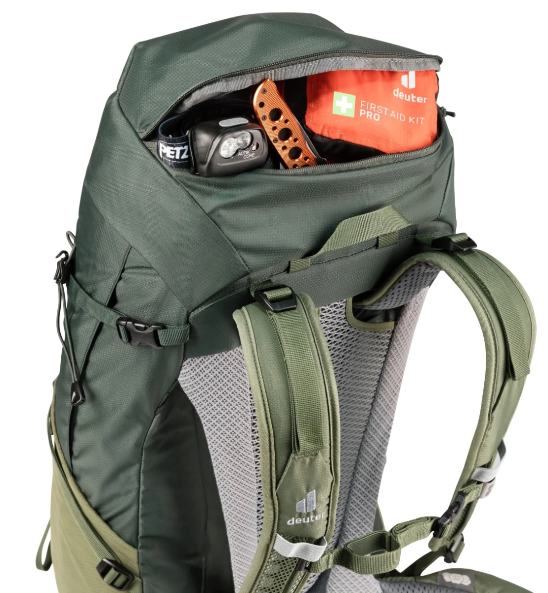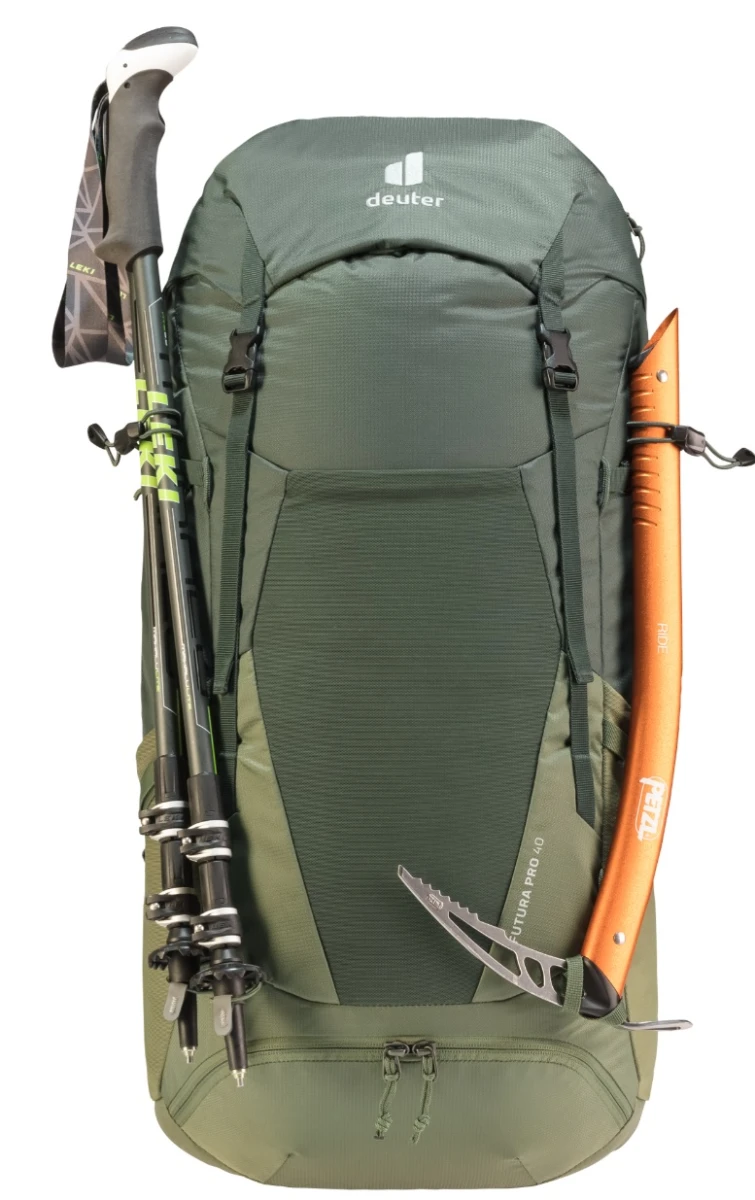 Batoh pro turistiku Deuter Futura Pro 40: je dvoukomorový batoh s unisex konstrukcí, s vrchním plněním, bočními pružnými kapsami a skládanými kapsami na bocích. Zádový systém Aircomfort Sensic Pro je tvořeným síťkou, který umožňuje odvětrání zad. Je dostatečně pohodlný.