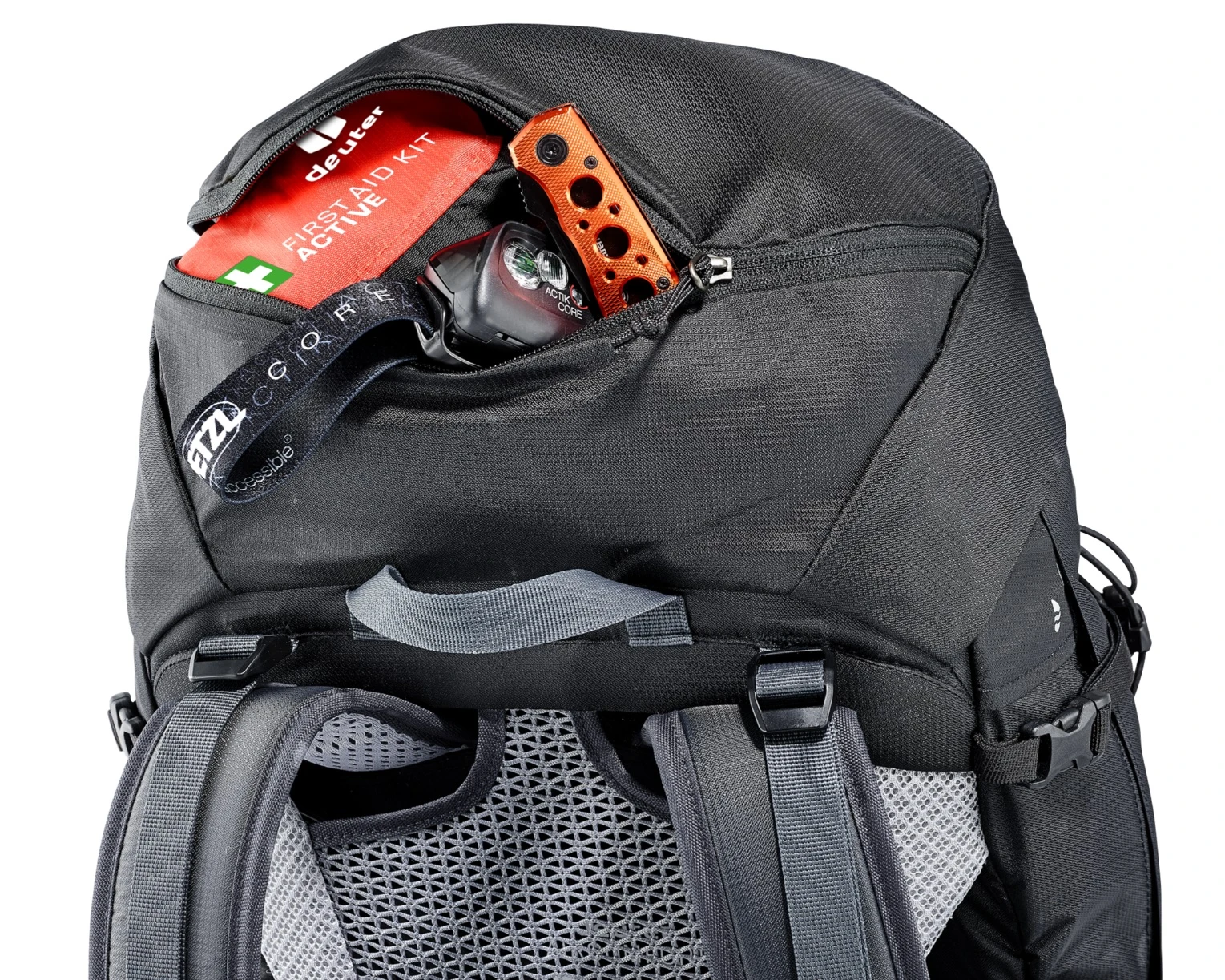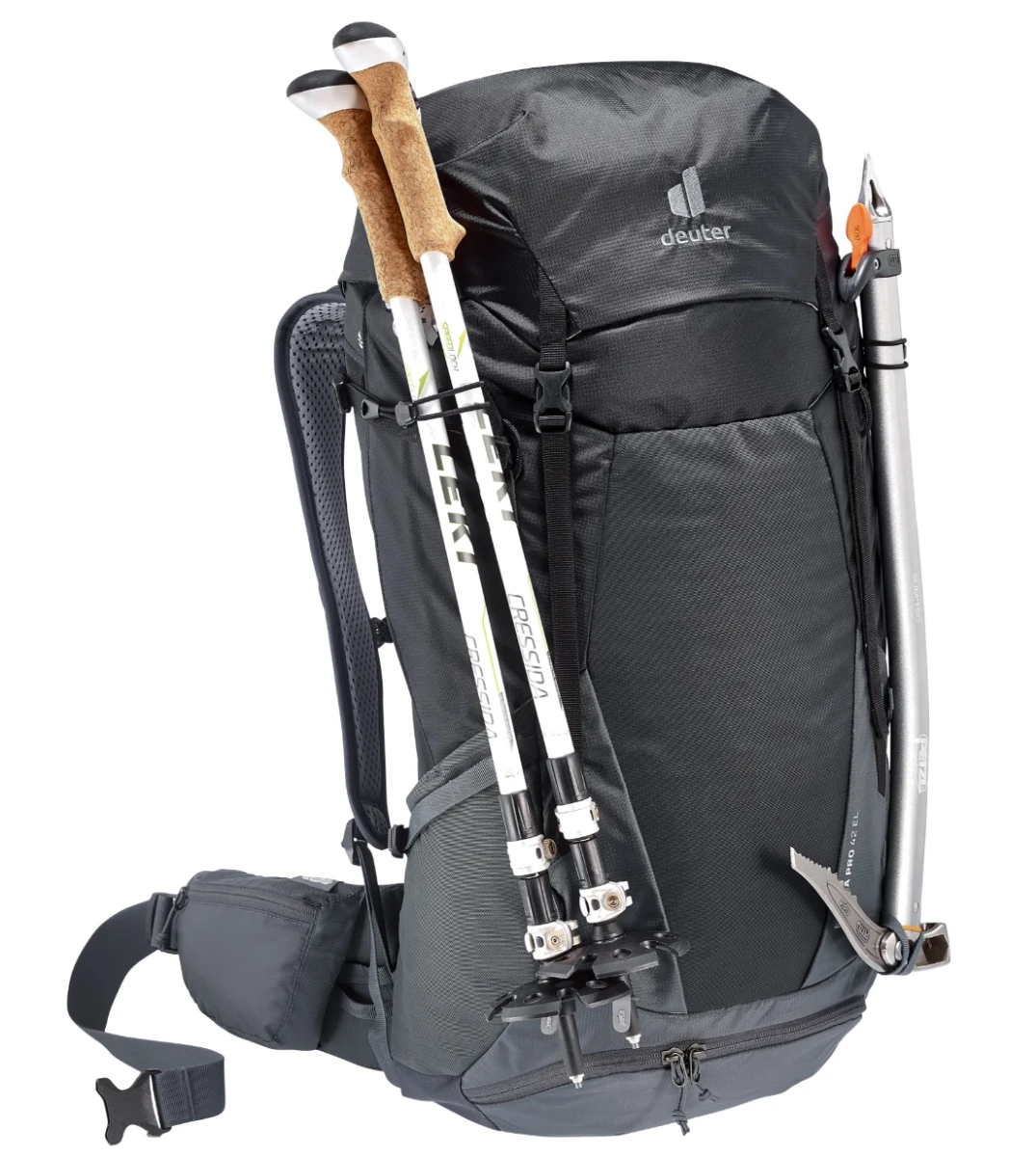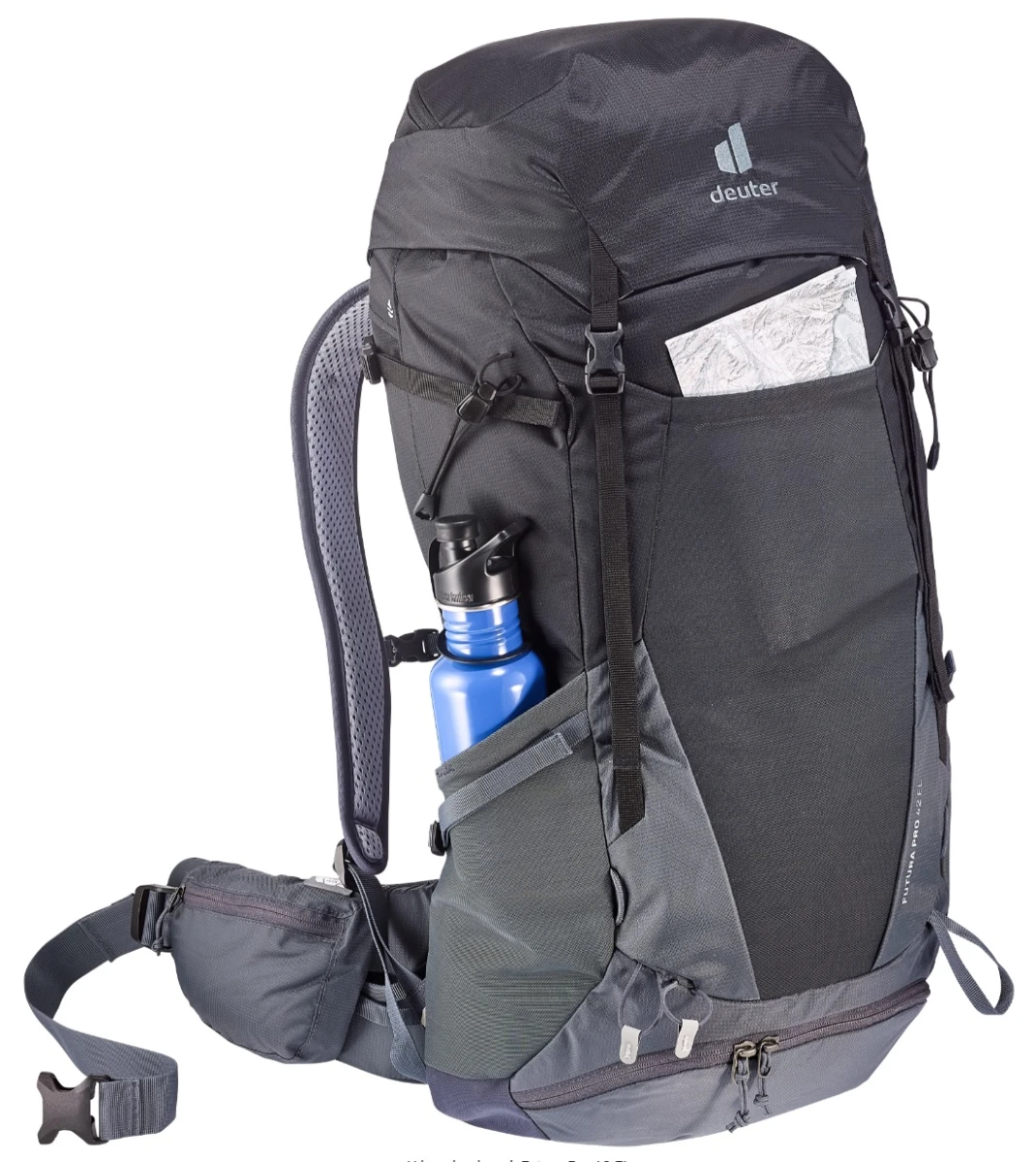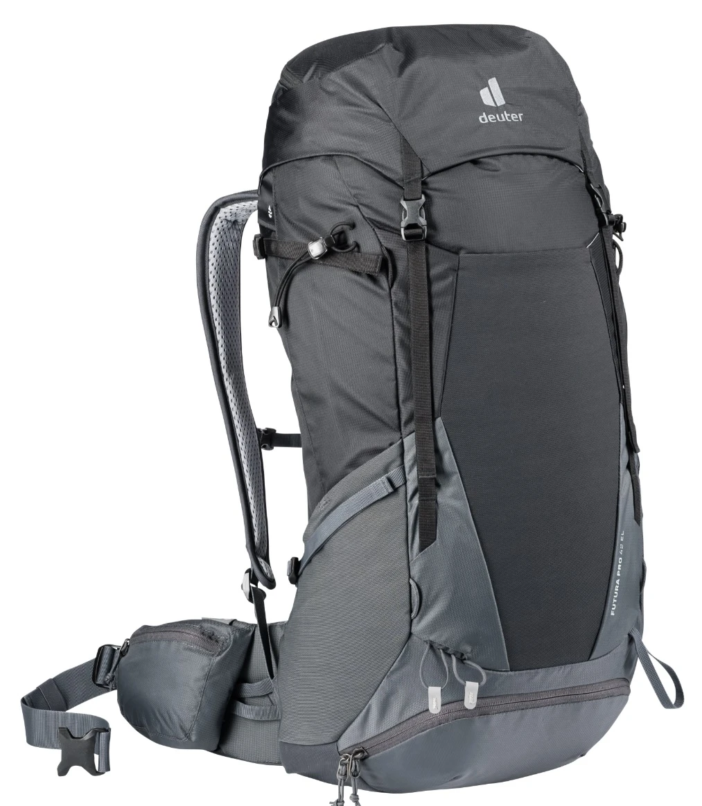 Batoh pro turistiku Deuter Futura Pro 42 EL: dvoukomorový batoh se zádovým nastavitelným systémem 48 - 58 cm. Má vrchní plnění. Boční síťované kapsy, skládané kapsy na bocích, zádový systém tvořený síťkou pro odvětrání zad. Batoh je ideální na několikadenní turistiku.