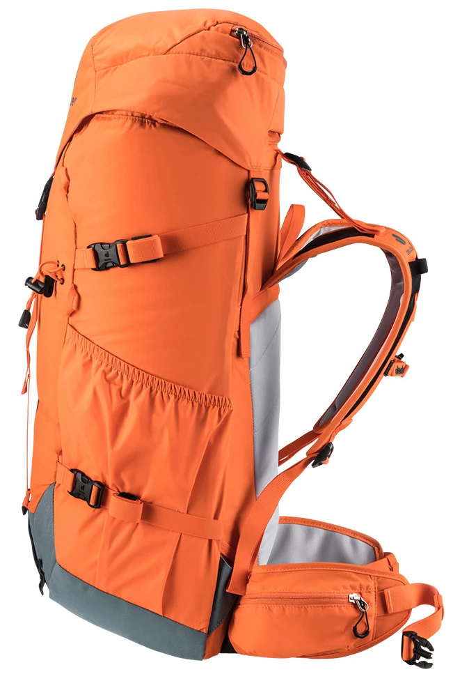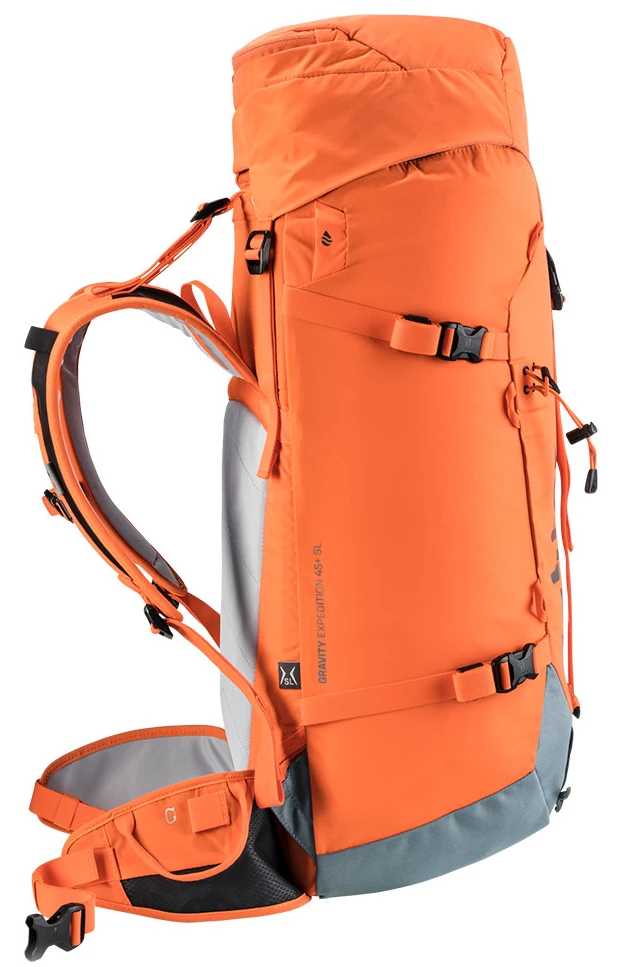 Deuter Gravity Expedition 45+ SL: tento unikátní dámský batoh, je určený pro běžné nošení na lezení, ale také ho můžete využít při vícedenních výpravách na skály. Tvar batohu byl speciálně navržen, se zaměřením na poskytnutí maximálního komfortu a prodyšnosti. Design batohu je specifický pro dámskou postavu. Ramenní popruhy mají zřetelný tvar S, a ke konci se ztenčují, aby perfektně seděly, čímž se snižuje riziko tření a odřenin. Mezi ramenními popruhy najdete posuvný prsní popruh, který stabilizuje váš batoh se zátěží na zádech.