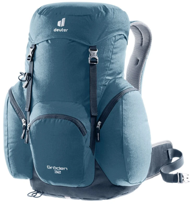 Deuter Gröden 32: turistický batoh o objemu 32 litru v retro stylu ale s moderními prvky. Hodí se na jednodenní turistiku. Batoh má zádový systém Aircomfort tvořený síťkou, poskytuje vám maximum ventilace, záda se tolik nepotí. Nechybí bederní pás, hrudní pás a polstrované anatomicky tvarované ramenní popruhy.