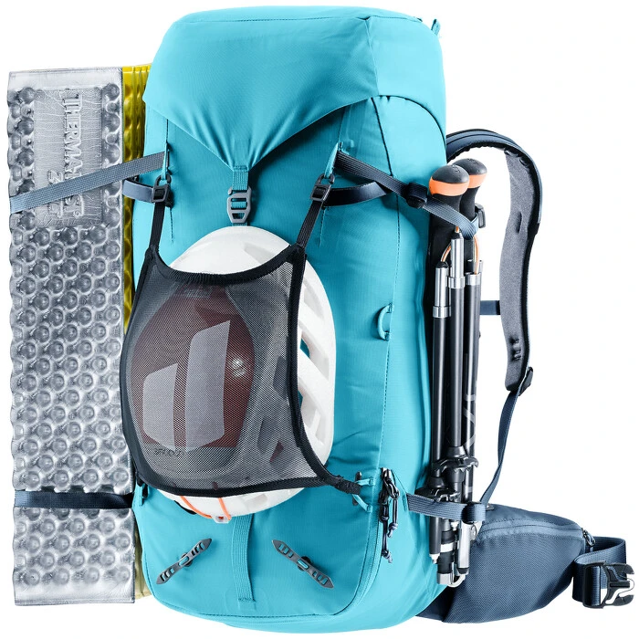 Deuter Guide 32+8 SL: je roky oblíbený horolezecký batoh určený pro drobnou nebo dámskou postavu s velmi praktickou velikostí 32 litrů, který je rozšiřitelný na 40 litrů. Je vhodný pro lezení ve sportovních oblastech stejně tak jako lezení vícedélek v létě i v zimě. Vejde se do něj potřebné vybavení a další můžete navěsit na batoh.