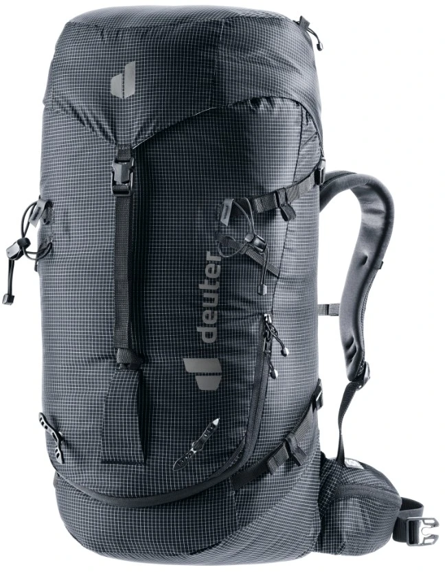 Variabilní objem: Základních 34 litrů lze díky výškově nastavitelnému víku rozšířit o dalších 6 litrů, což poskytuje dostatek místa pro lano, náhradní oblečení nebo bivakovací vybavení.