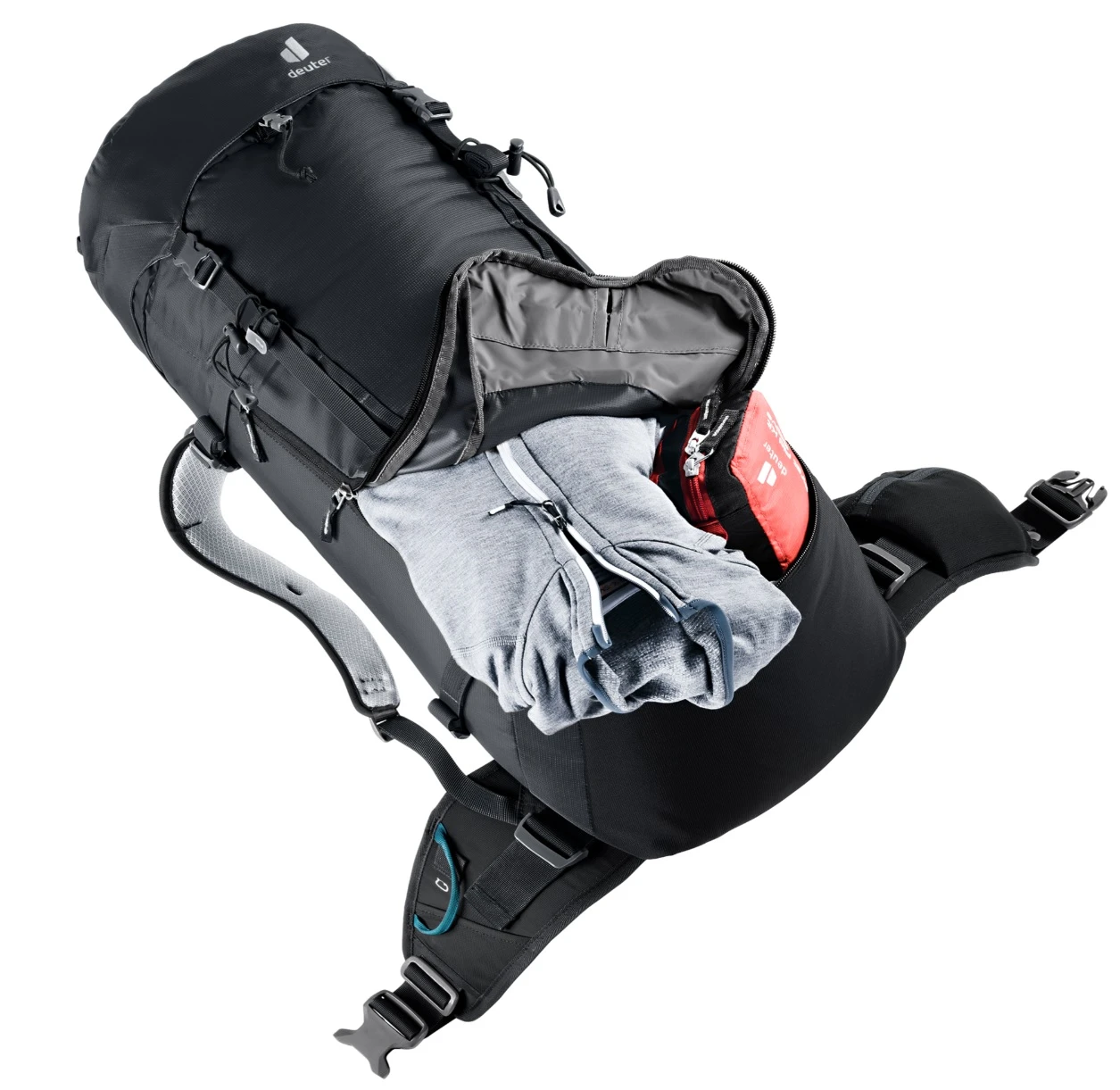 U batohu najdete hlavní objemnou komoru uzavíratelnou shora klopou se dvěma přezkami. Další kapsy umístěné na klopě a bederním pásu umožňují ještě lepší organizaci potřebných věcí. Na předním panelu najdete poutka pro připevnění trekových holí a cepínů. Na přední straně najdete také praktické háčky, na které můžete připevnit přiložený držák na helmu nebo karabiny s potřebným příslušenstvím. Batoh jde obsluhovat i v rukavicích.