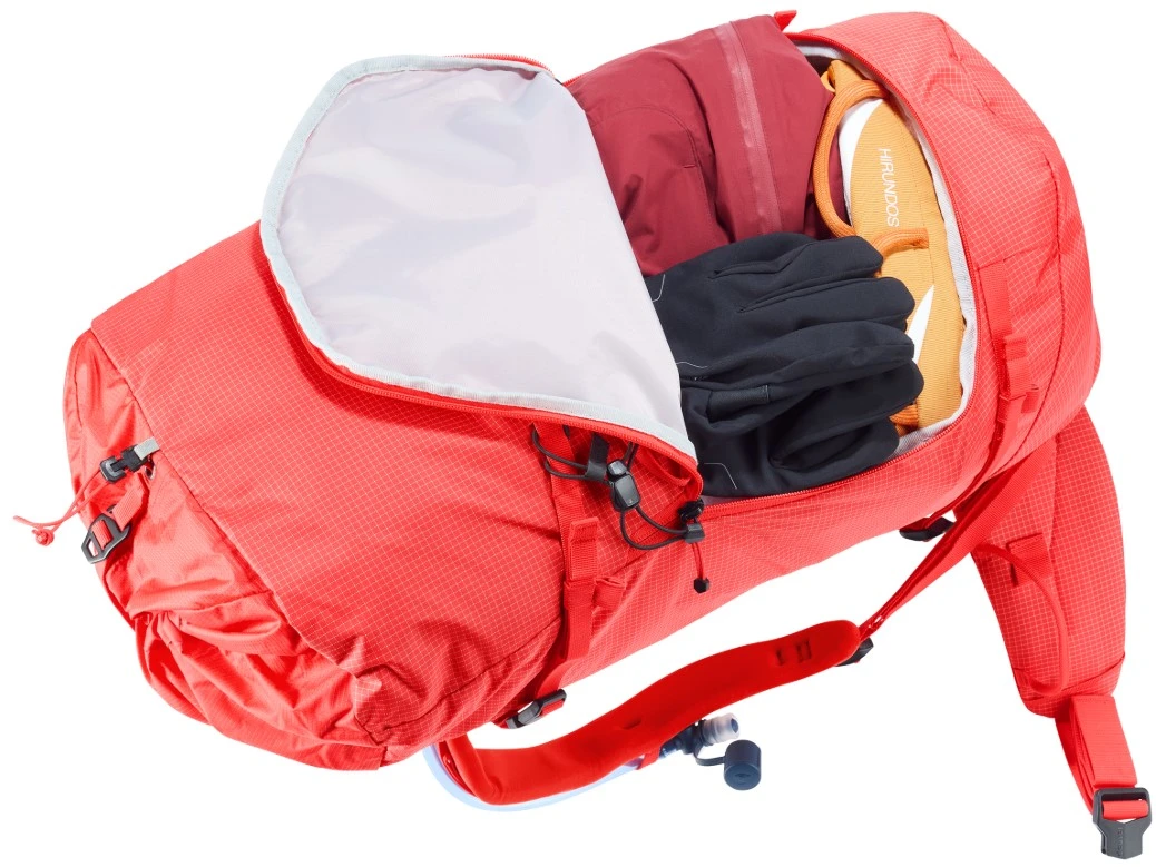 Velkorysý objem: Základních 42 litrů lze díky výškově nastavitelnému víku navýšit o dalších 6 litrů. To poskytuje dostatečnou rezervu pro stan, lano nebo extra teplé oblečení.