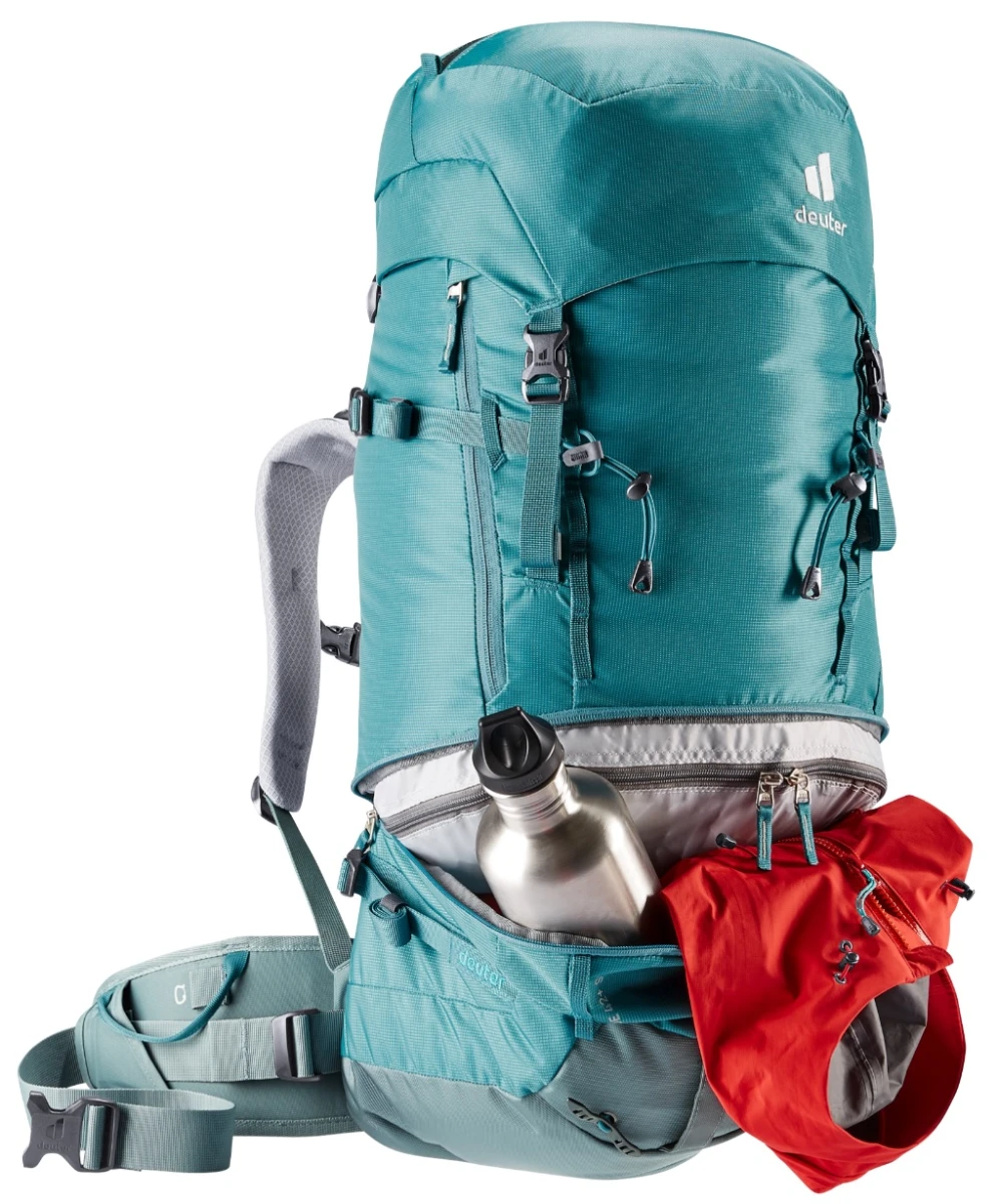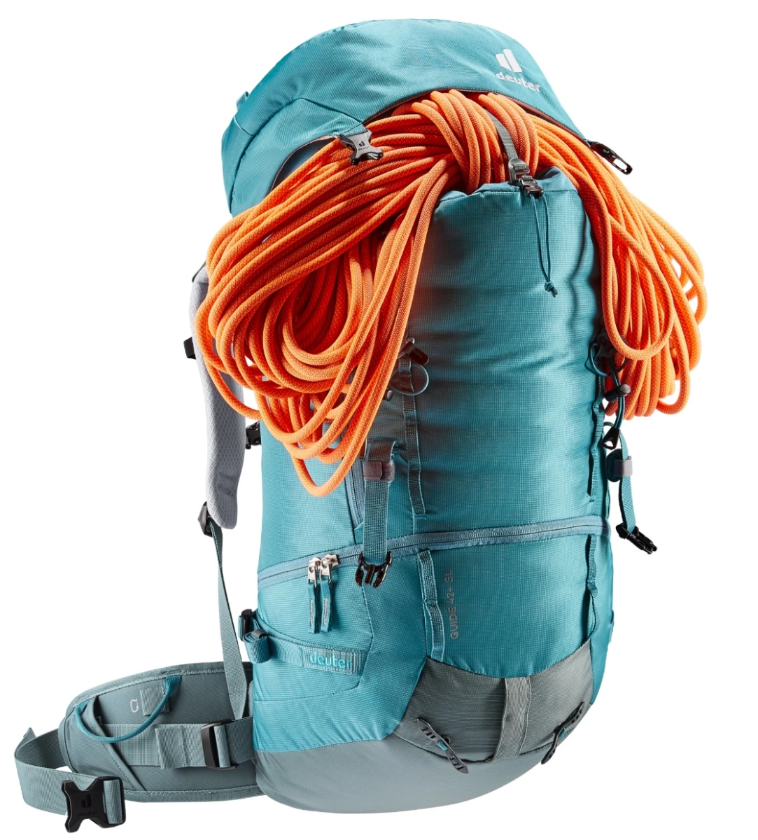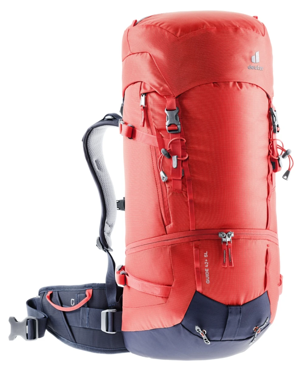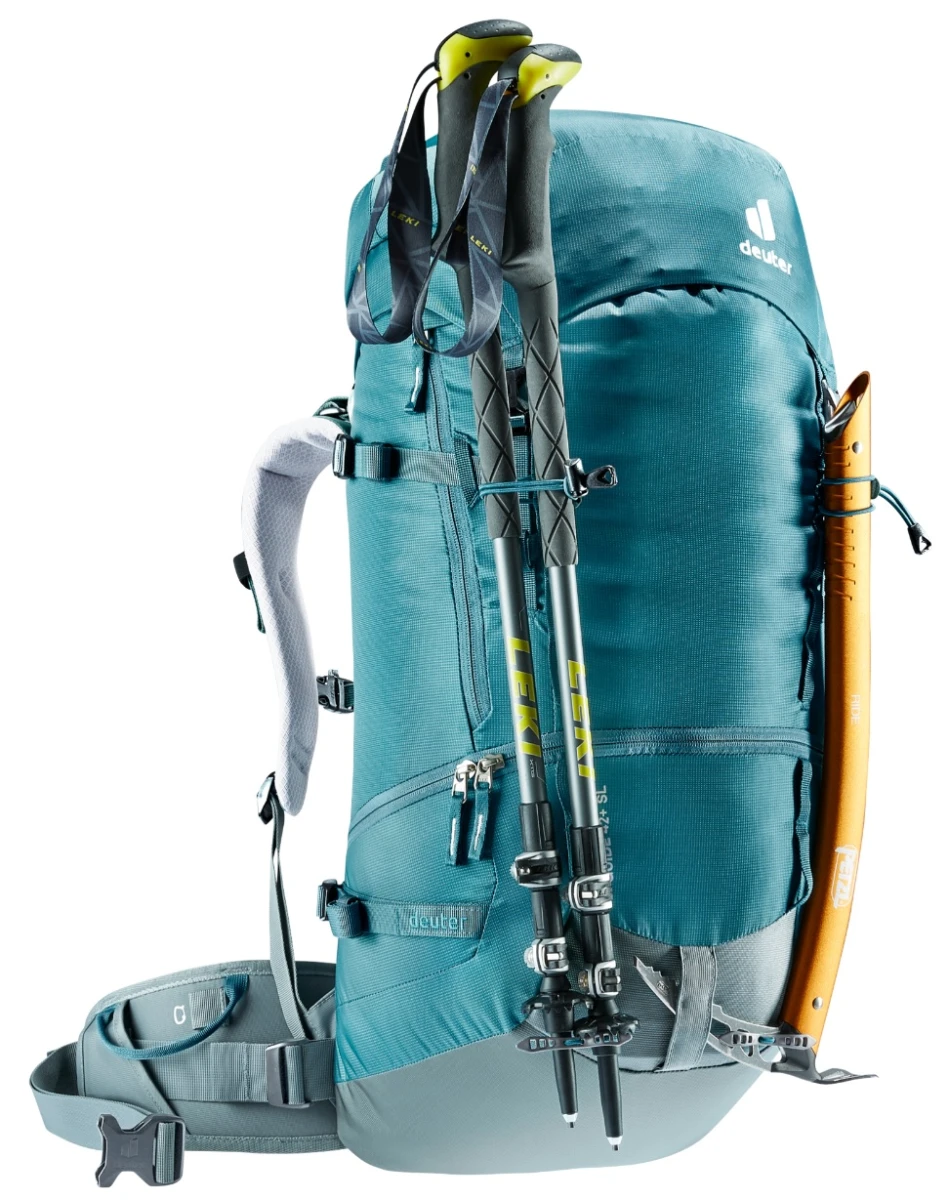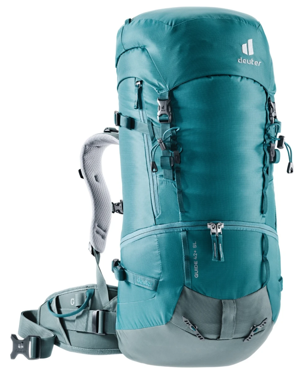 Deuter Guide 42+ SL : je bytelný outdoorový batoh pro ženy a osoby menší postavy. Je vyrobený z odolného materiálu, proto je ideální volbou do hor. Hodí se jak na vysokohorskou turistiku, tak i na lezení ferrat, nebo skialpinismus. Má velikost 42 litrů, kterou můžete rozšířit až o dalších 8 litrů. Základem je dobrý zádový systém, který je kratší, pro větší pohodlí. Vše ještě doplní jednoduchá konstrukce, odpojitelný bederní pás a vyztužující vložka na zádech. Batoh jde obsluhovat i v rukavicích.