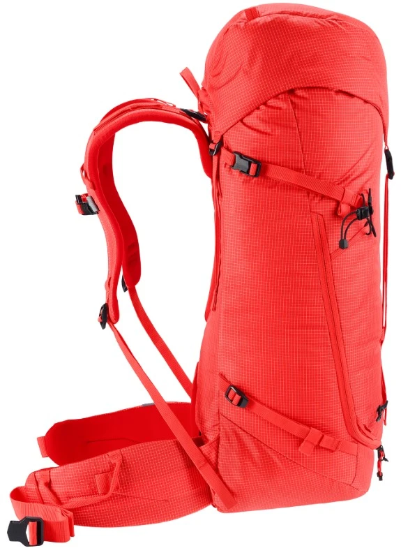 Deuter Guide 44+6: Expediční dříč pro náročné výstupy a vícedenní akce. Deuter Guide 44+6 je nejobjemnějším zástupcem legendární řady Guide, navržený pro horolezce a horské vůdce, kteří potřebují transportovat značné množství vybavení na delší vzdálenosti. I přes svůj velkorysý objem si zachovává štíhlý profil, špičkovou stabilitu a možnost radikálního snížení hmotnosti pro závěrečný lezecký útok.