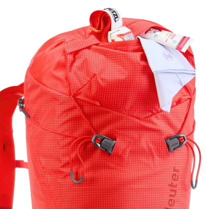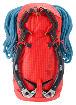 Hlavní komora batohu je dostatečně velká (22 litrů), s vrchním vstupem pomocí stahovací šňůrky. K zadní části batohu je připevněná malá látková klopa, kterou zakryjete vršek batohu, nebo dobře poslouží na připevnění lana nebo helmy k batohu. Uvnitř batohu najdete praktickou kapsu na hydro vak (3 litry), nebo špinavé oblečení. Na přední straně batohu najdete kapsu se zipem na drobné cennosti. Po stranách se pak nachází elastická poutka na upevnění cepínů.