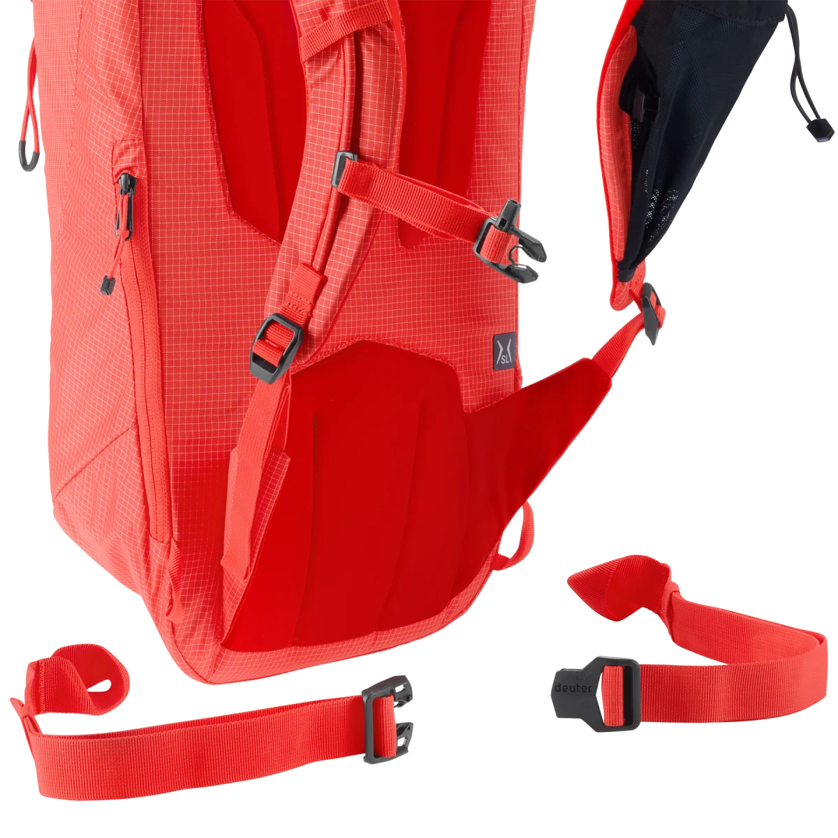 Deuter Guide Lite 22 SL: Dámský turistický batoh od německé značky Deuter. Je vhodný jako batoh na lezení, ferraty nebo na několikadenní turistiku. Má zádový systém vyrobený z pěny potažené síťovinou, která vám zajistí dokonalé přizpůsobení a dobrou úroveň ventilace. Ramenní popruhy jsou ergonomicky tvarované a vypolstrované. Tento model batohu má také nastavitelný bederní pás, který lze v případě potřeby odepnout. Hrudní popruh si můžete nastavit podle výšky a najdete na něm malou integrovanou píšťalku.
