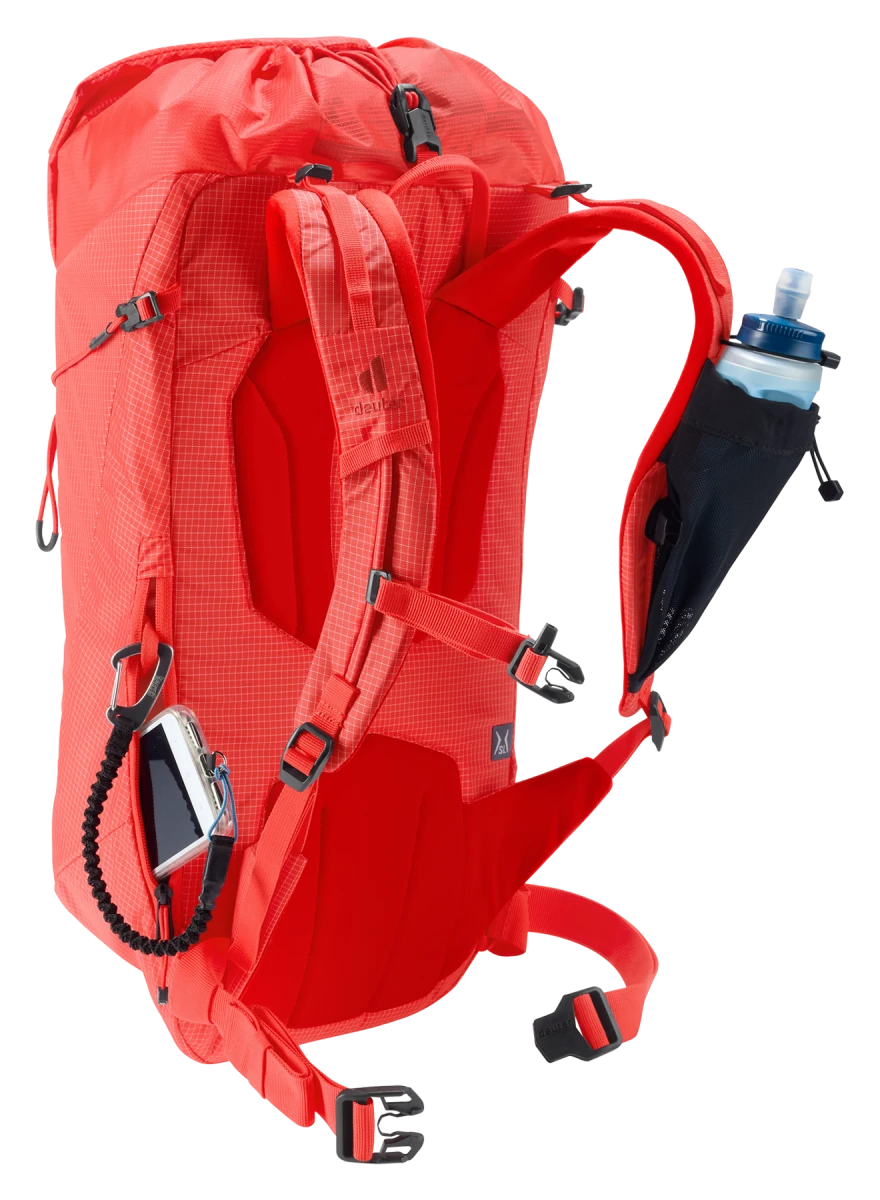 Hlavní komora batohu je dostatečně velká (22 litrů), s vrchním vstupem pomocí stahovací šňůrky. K zadní části batohu je připevněná malá látková klopa, kterou zakryjete vršek batohu, nebo dobře poslouží na připevnění lana nebo helmy k batohu. Uvnitř batohu najdete praktickou kapsu na hydro vak (3 litry), nebo špinavé oblečení. Na přední straně batohu najdete kapsu se zipem na drobné cennosti. Po stranách se pak nachází elastická poutka na upevnění cepínů.