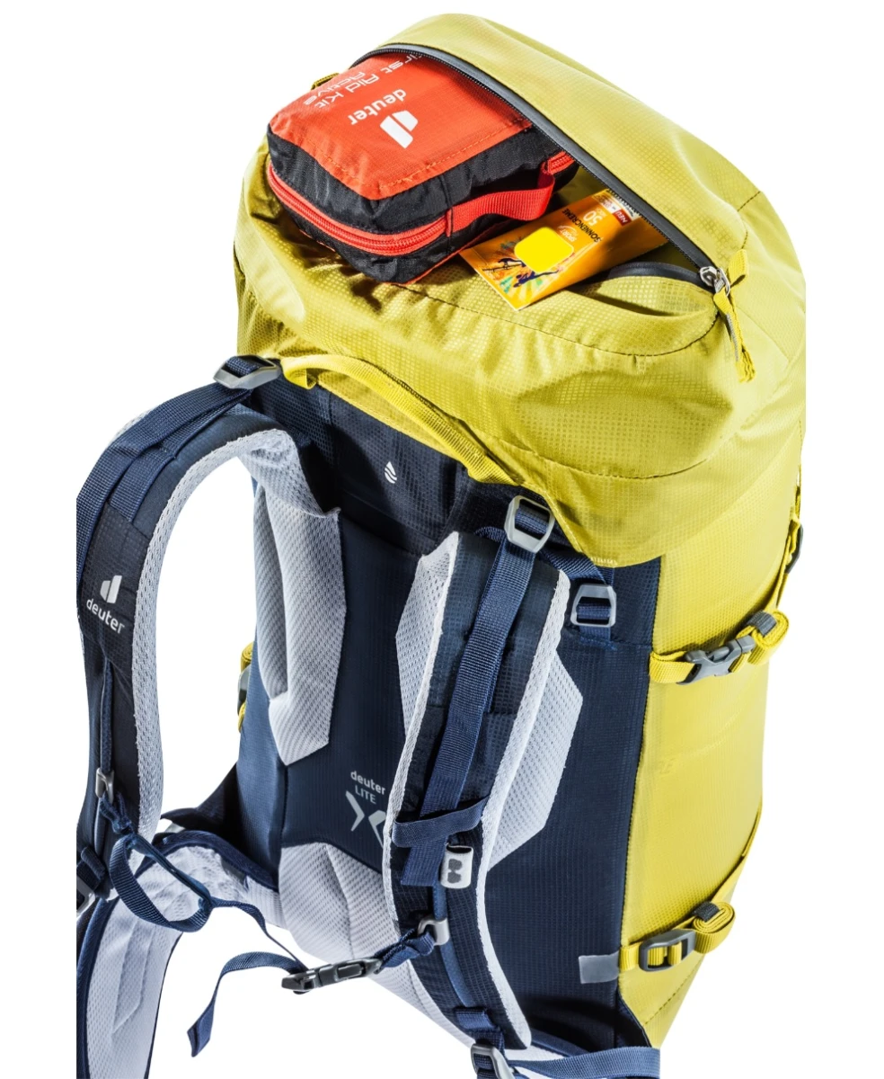 Deuter Guide Lite 28+ SL: Dámský trekový batoh, který si oblíbí především všichni příznivci horské turistiky, ferrat, turistiky a lezení. Batoh má nosný zádový systém Deuter Lite, který je vyrobený za pěny potažené síťovinou, což vám zajistí dokonalé přizpůsobení zádům a velice dobrou ventilaci. Dále tu také najdete ergonomické ramenní popruhy, které vás nebudou tlačit, ani při delší chůzi.