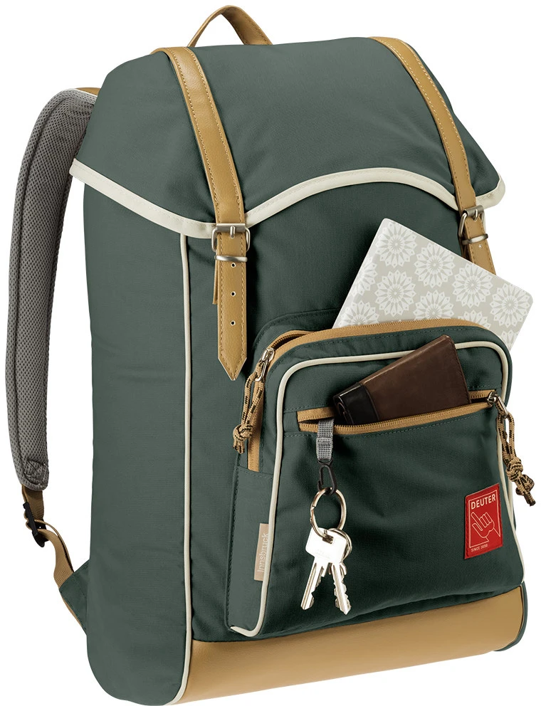 Deuter Innsbruck 22: je menší batoh v retro stylu přizpůsobený dnešní době. Objem je 22 litrů, vejdou vám do něj nutné věci na pracovní den. Nechybí kapsa na laptop, kapsa na tablet či kapsa na telefon.