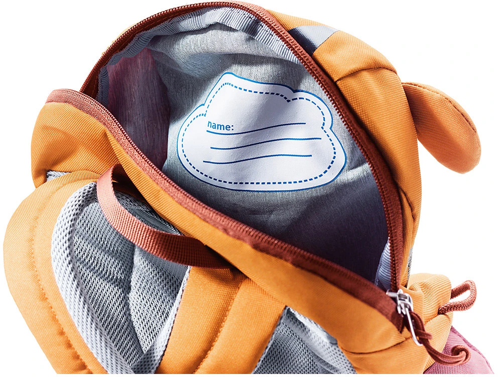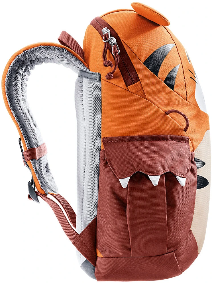 Deuter Kikki: batoh pro děti o objemu 8 litrů. Zádový panel je měkký a pohodlný. Pěkně drží na zádech díky měkkému zádovému panelu a prsnímu popruhu a esovitě tvarovaným ramenním popruhům. Batoh má jednu hlavní kapsu se štítkem na jméno, dvě boční kapsy. Je vhodný pro děti od 3 let.