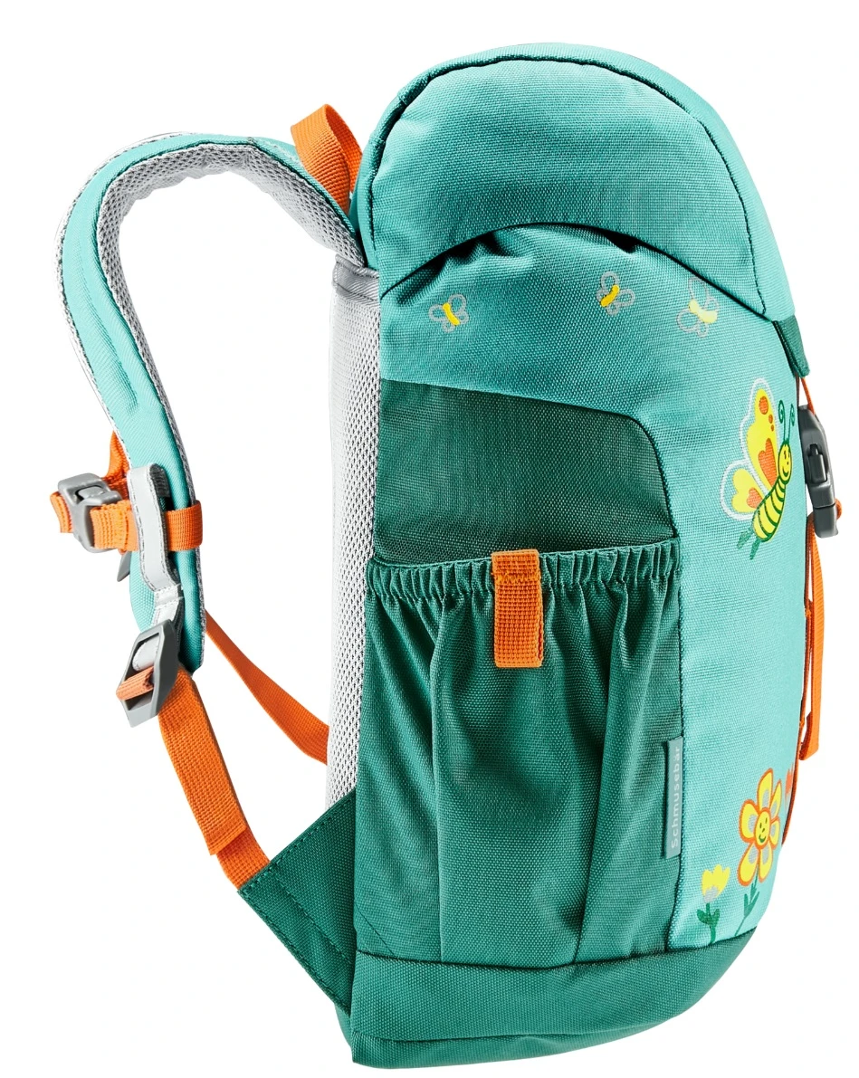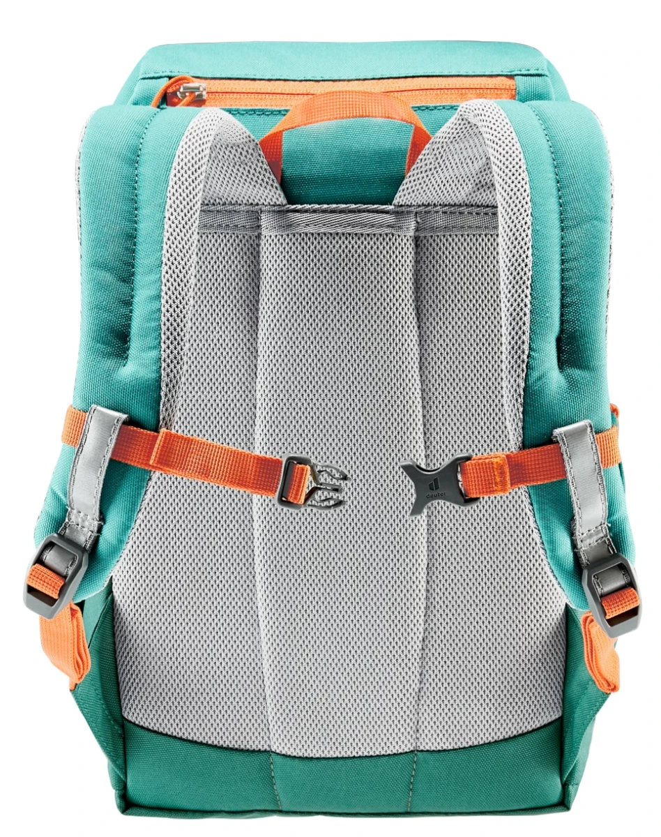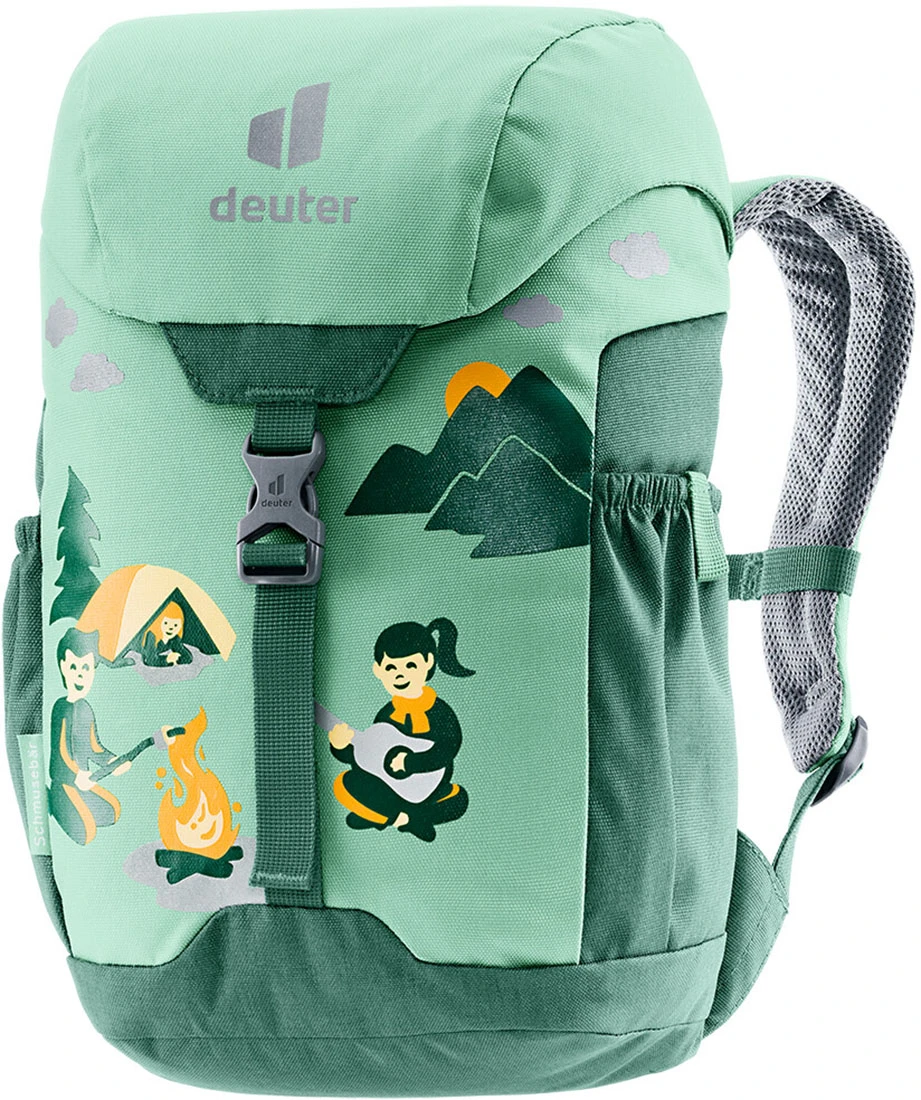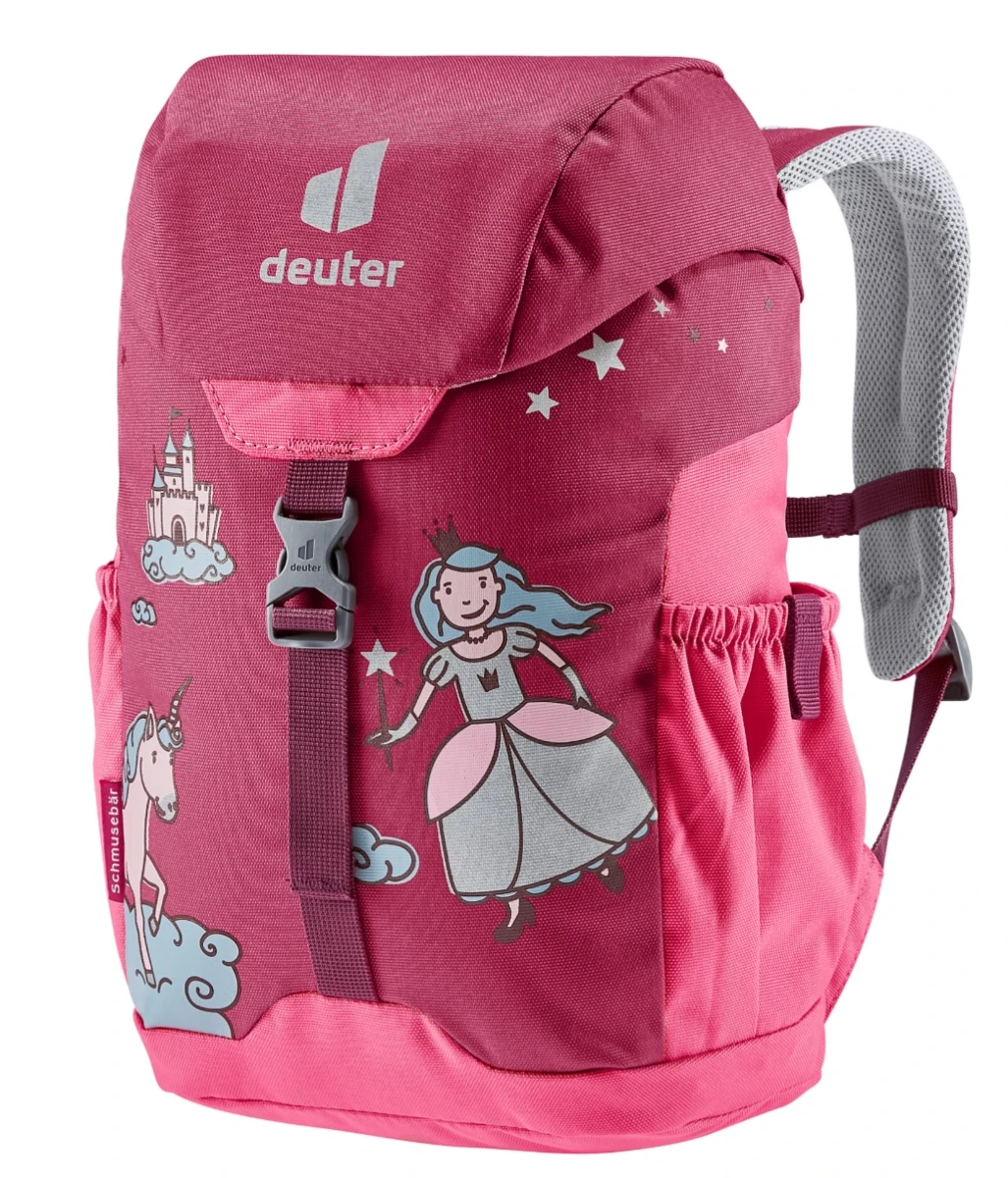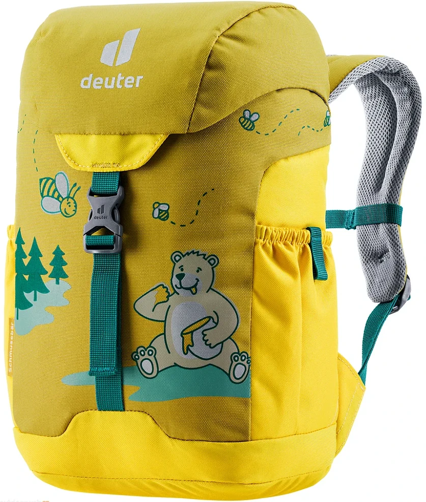 Deuter Schmusebär: Dětský batůžek o objemu 8 litrů je skvělou volbou na výlety i běžné chození po městě. Je vyrobený z pevné, a velmi lehké polyesterové příze, která je odolná proti roztržení. Další skvělou funkcí je také nastavitelný hrudní popruh, a jmenovka uvnitř batohu.