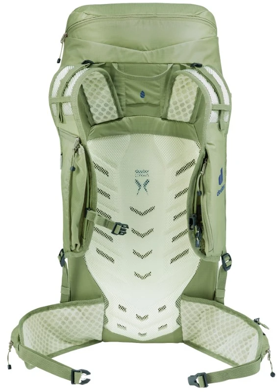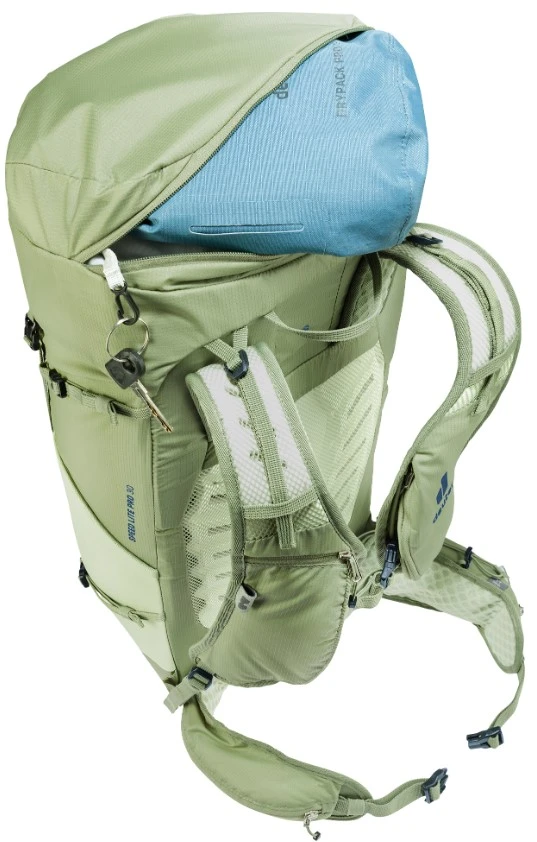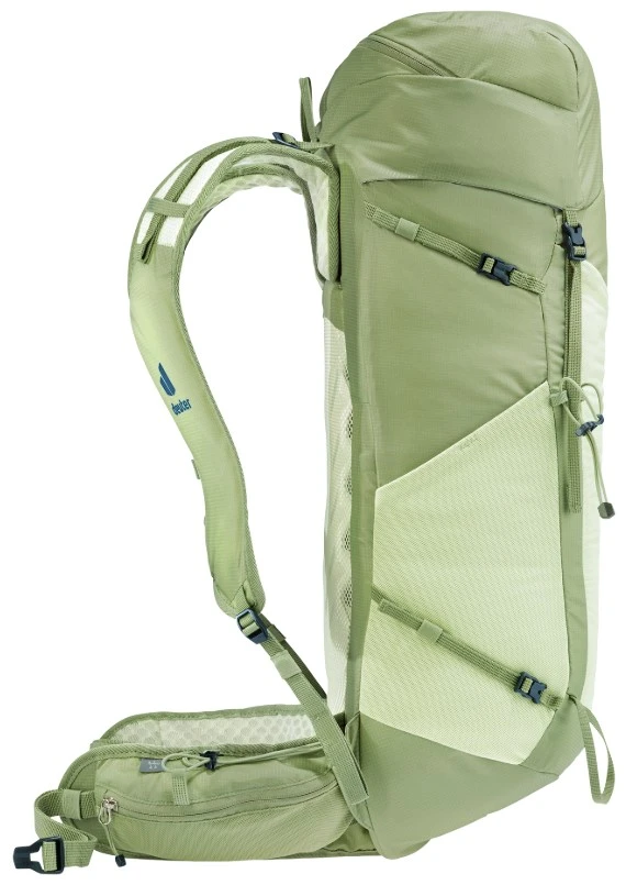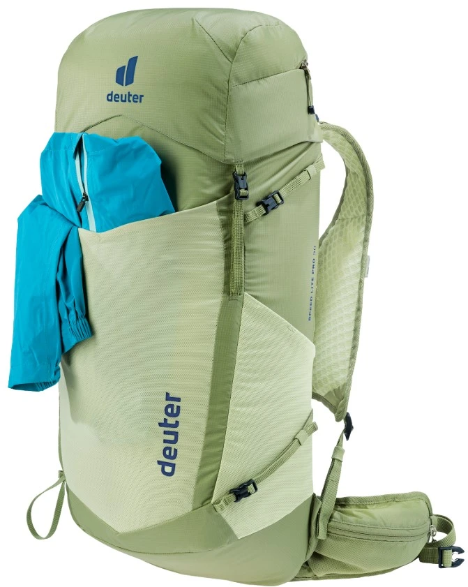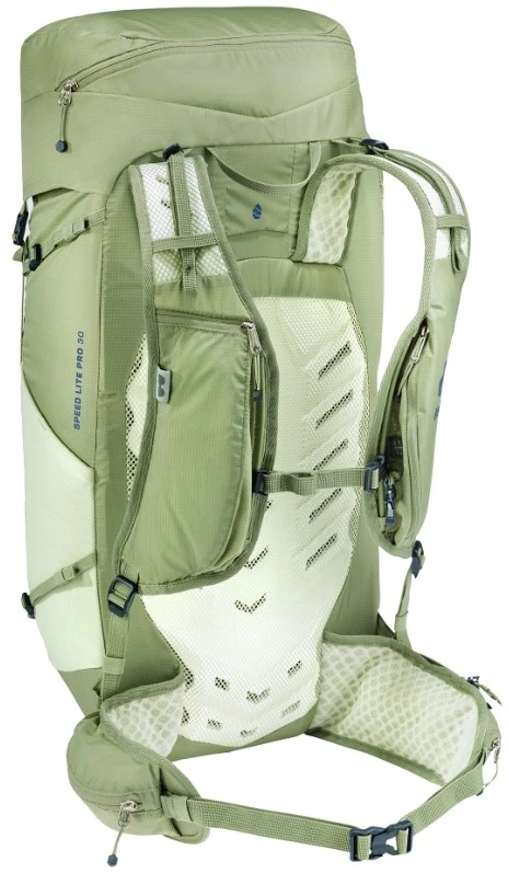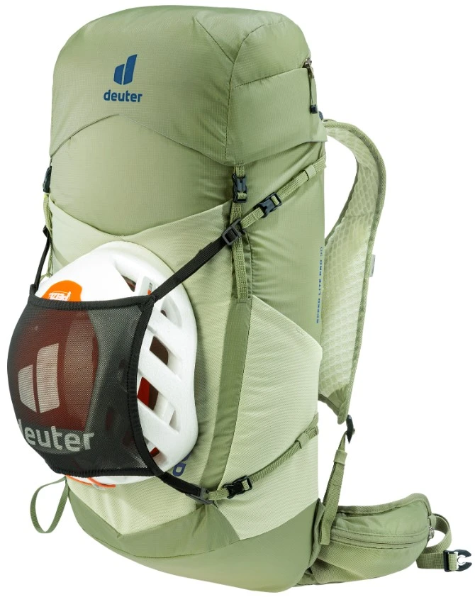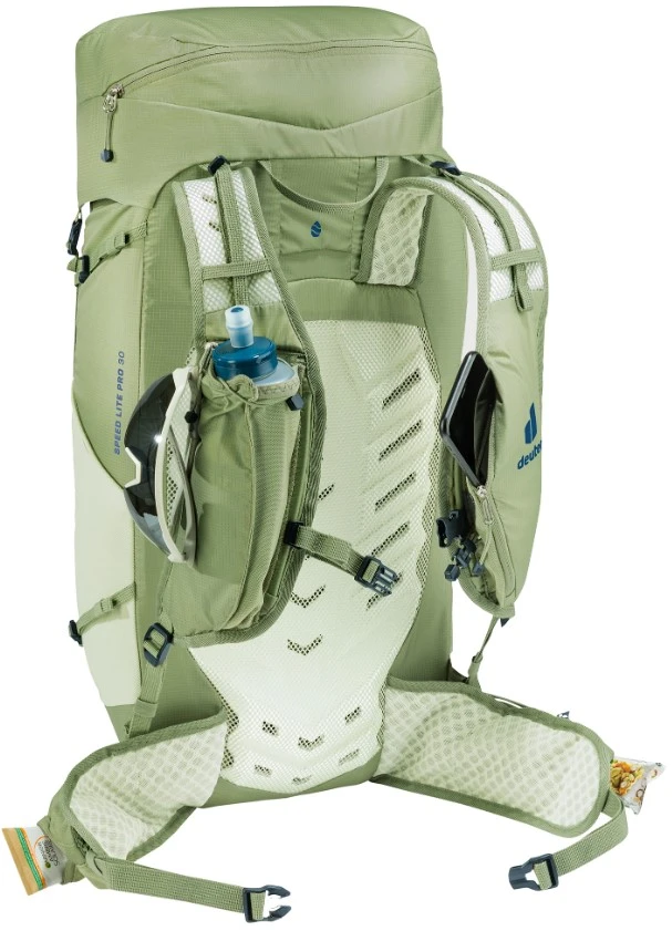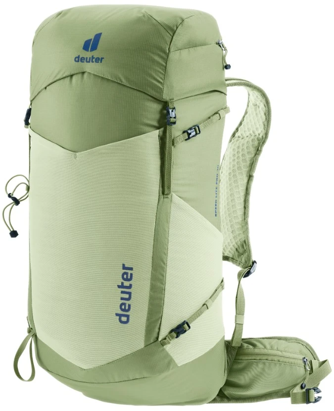 Deuter Speed Lite Pro 30: maximálně odlehčený outdoorový batoh vyrobený pro horské sporty. Je vyrobený s ohledem na nízkou hmotnost, váží jen 760 g při objemu 30 litrů. Minimalistický zádový systém LiteAir je prodyšný, je dostatečně pohodlný. Ramenní popruhy s praktickými kapsami.