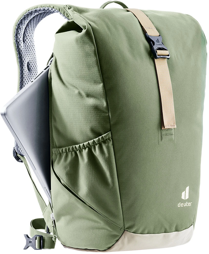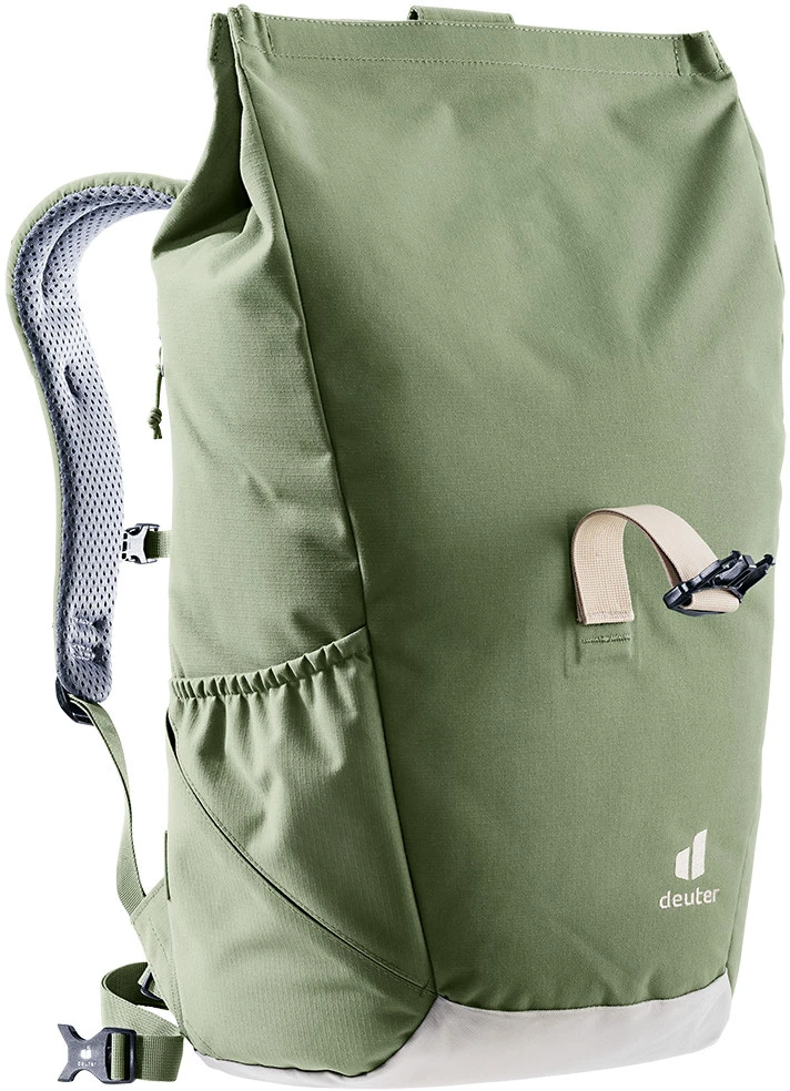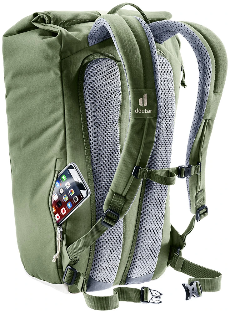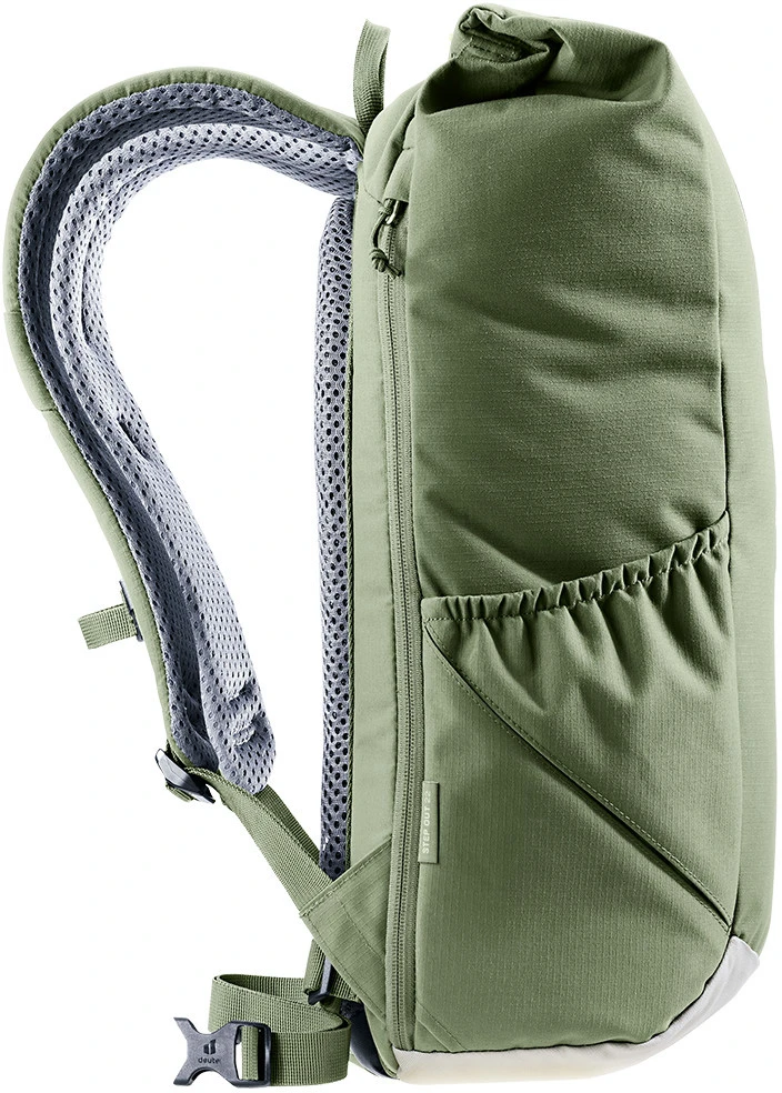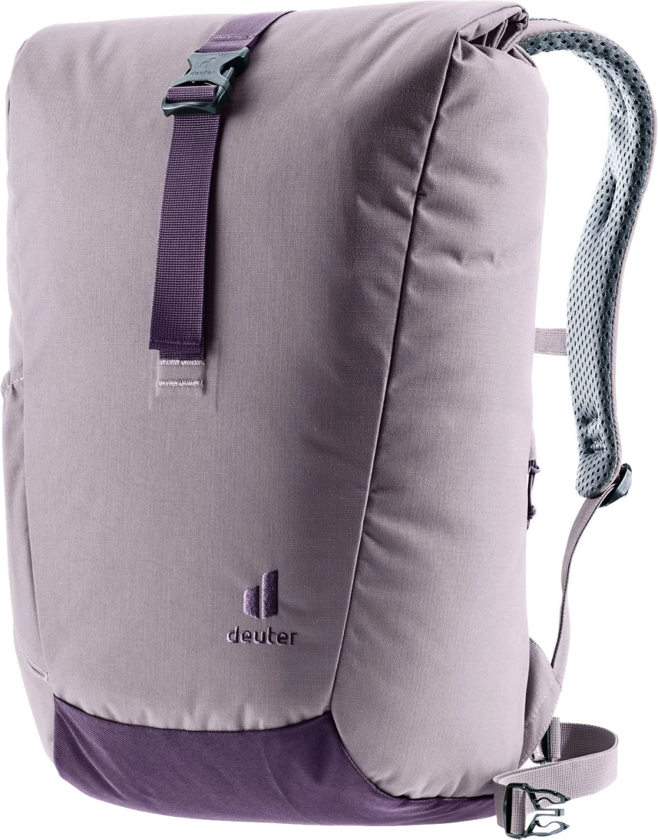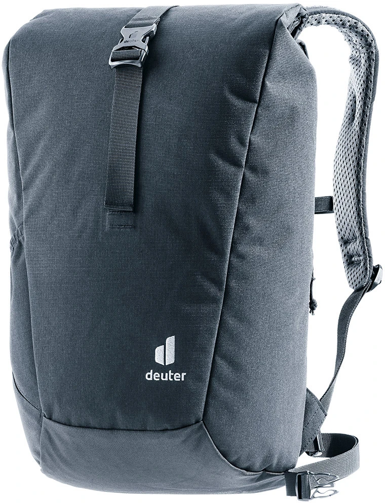 Deuter Step Out 22: batoh do města, do školy, na výlety. Má praktický Roll top zavírání, velikost je tak různě nastavitelná. Batoh má polstrovaná záda a anatomicky tvarované ramenní popruhy, odnímatelný bederní popruh. Uvnitř kapsa na dokumenty, přihrádka na tablet, kapsa na 15" notebook, kapsa na telefon, boční kapsa na láhev, klip na klíče.