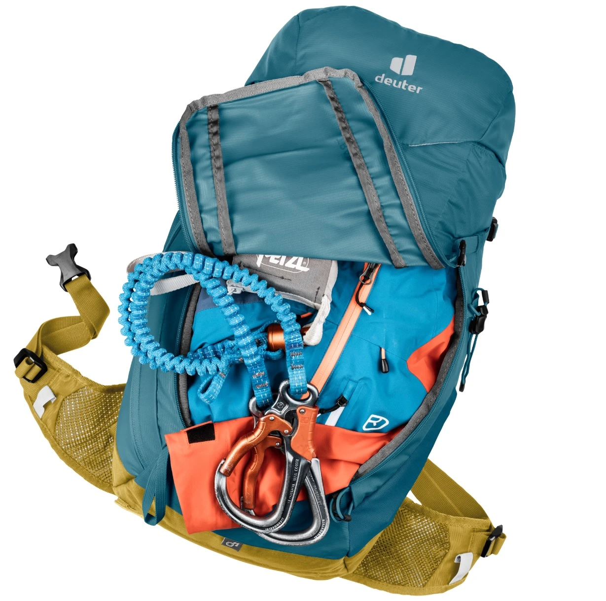 Všichni turisté také ocení poutka pro uchycení turistických holí nebo cepínu, poutka pro přídavný držák helmy a poutka na ramenních popruzích pro ferratové karabiny. Outdorový batoh má samozřejmě zabudovanou odnímatelnou pláštěnku pro případ, že vás na výpravě zaskočil déšť.