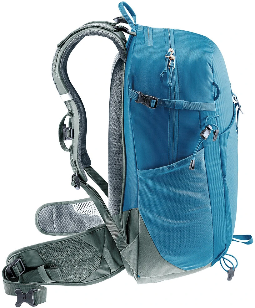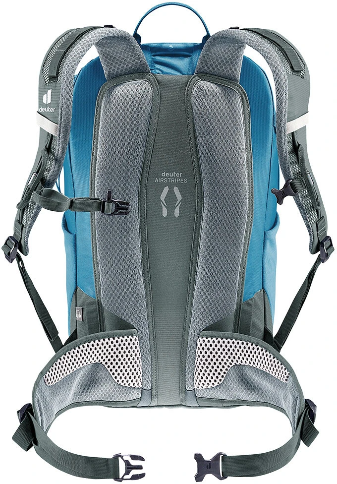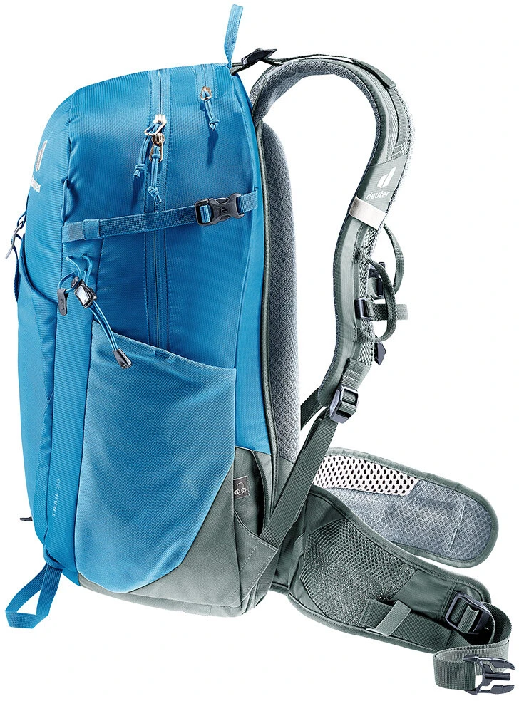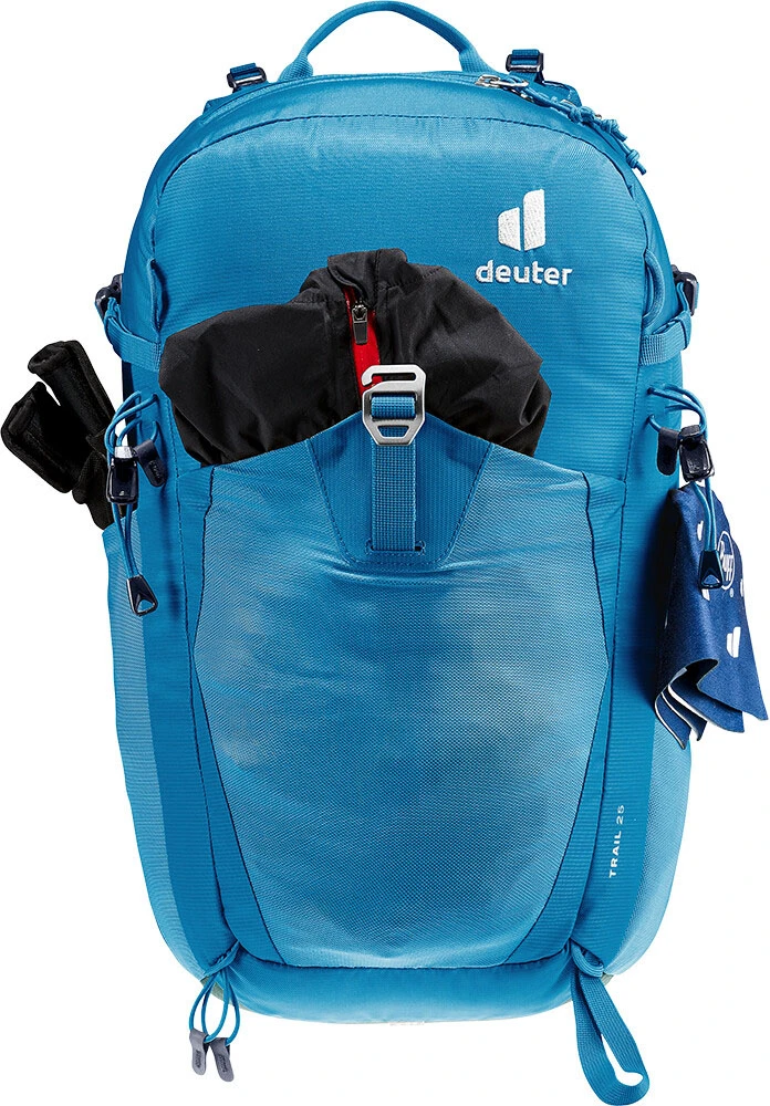 Deuter Trail 25: velmi dobře propracovaný turistický batoh o objemu 25 litrů. Hlavní komora je dostatečné velká aby jste pobrali vše potřebné. Vstup do komory je přes rozměrný zip. Zádový systém deuter Airstripes zajistí prodění vzduchu, záda se pak tolik nepotí a zůstávají v suchu. Ramenní popruhy mají oka pro přichycení karabin, via ferrata set tak budeme mít stále po ruce.