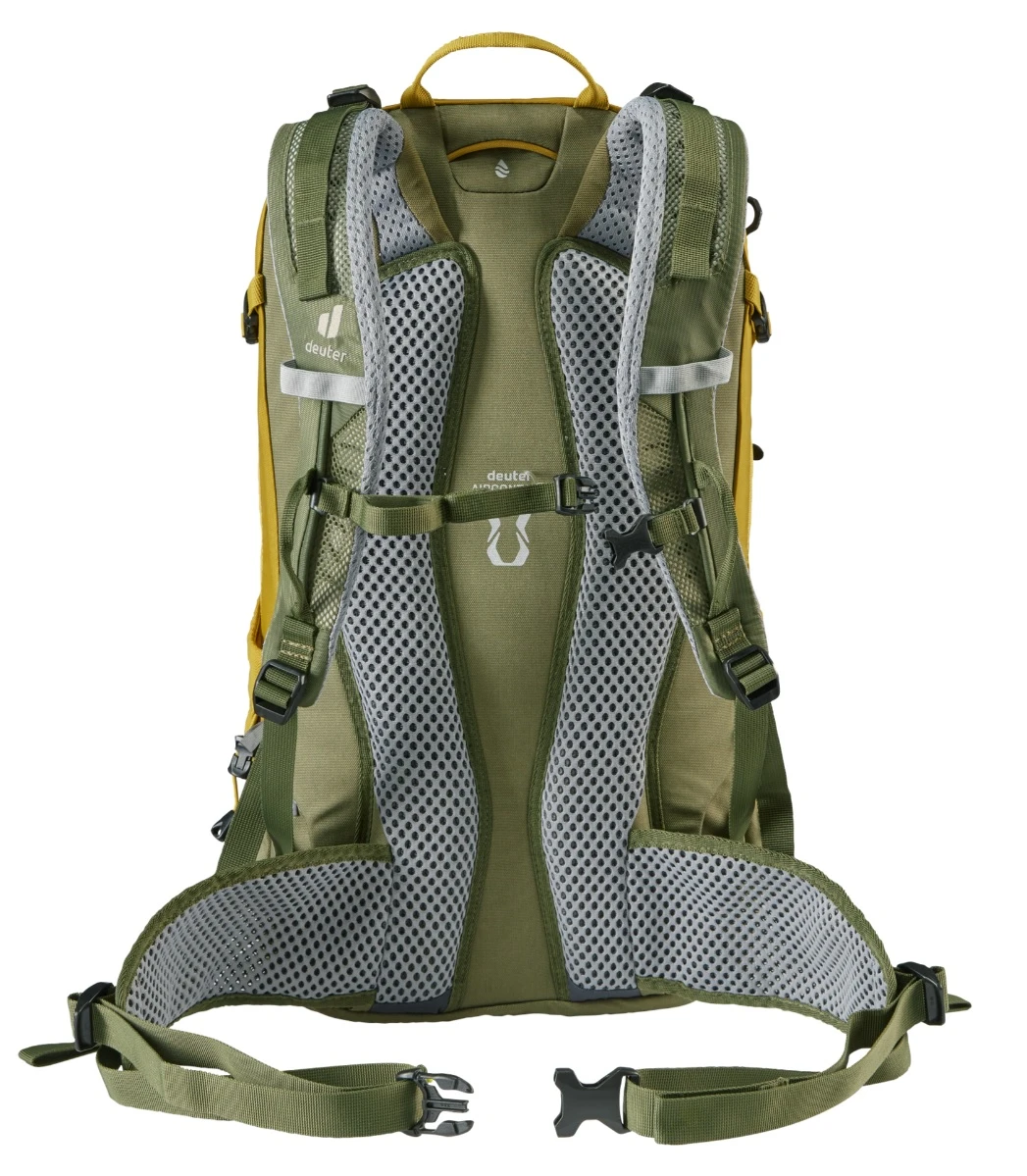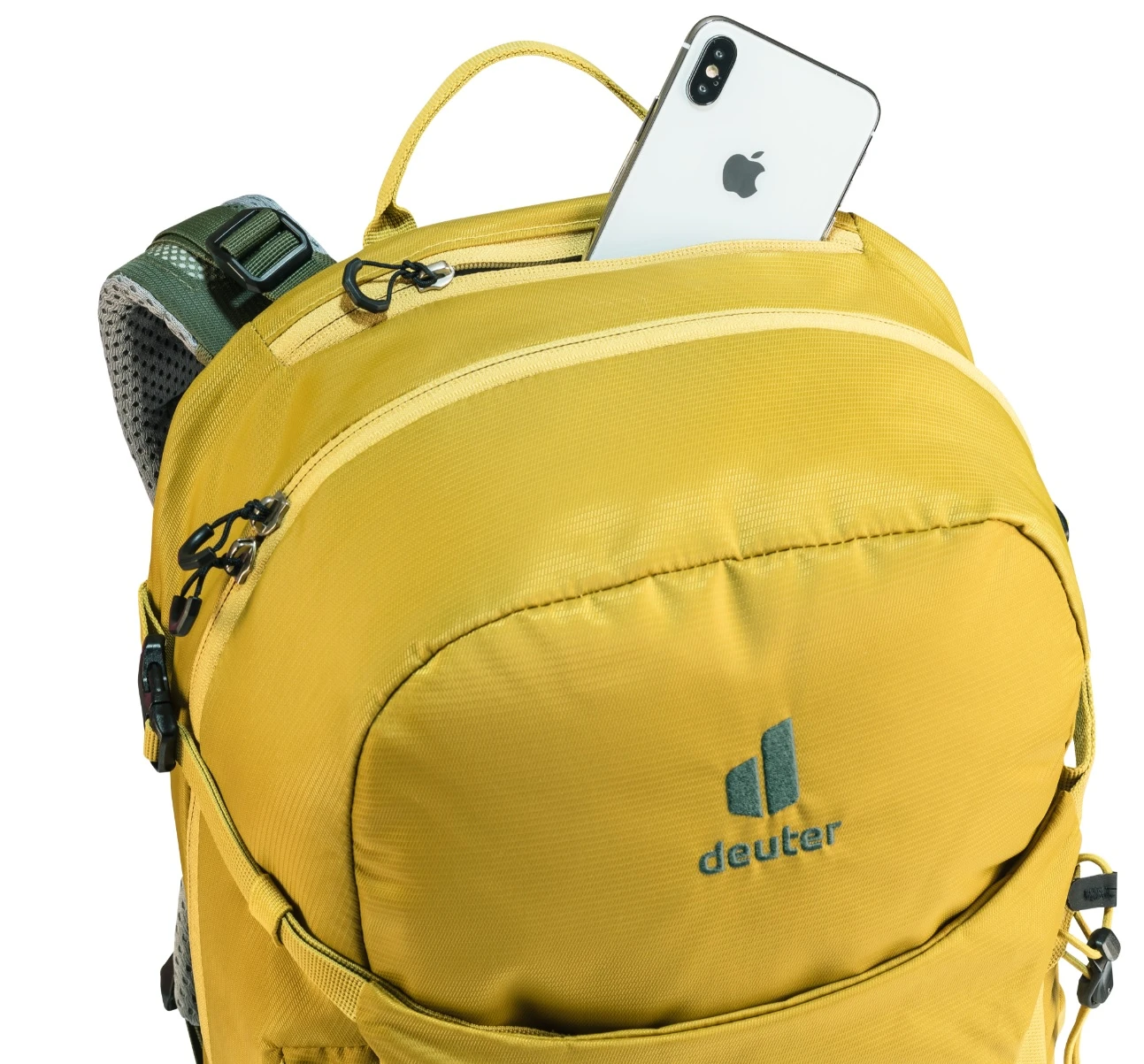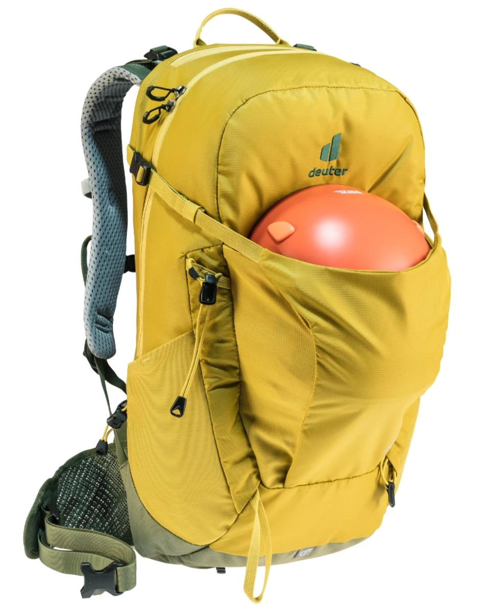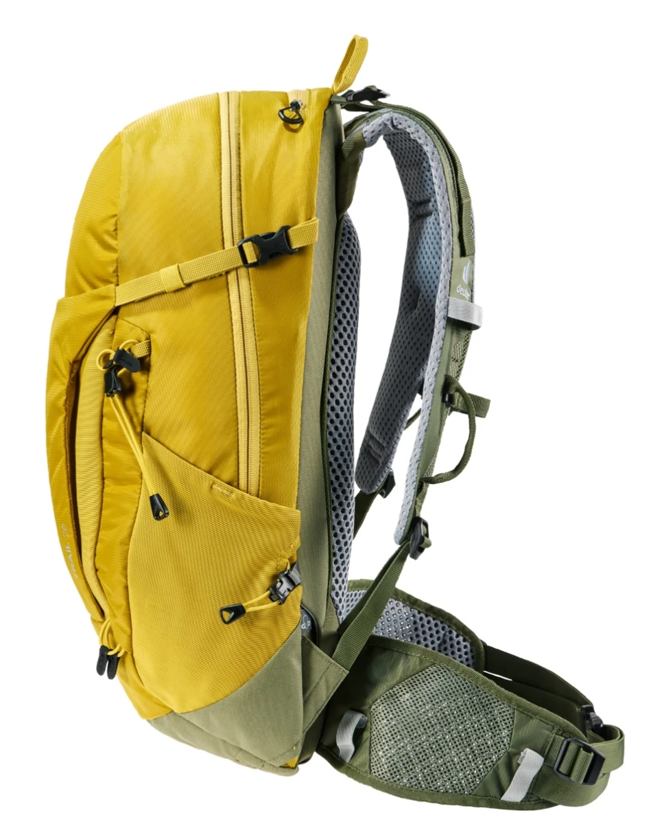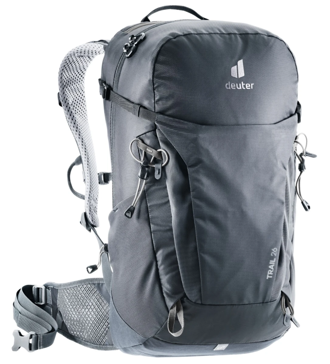 Sportovní batoh Deuter Trail 26: s jednou komorou přístupnou z vrchu i přes rozměrný otvor zipem. Zádový systém umožňuje velmi příjemné odvětrávání. Najdete zde také praktické boční kapsy, malou kapsičku na vrchní straně batohu vhodnou na mobilní telefon, nebo klíče, a kapičku na drobnosti, umístěnou na bederním pásu. Součástí batohu je také padnoucí pláštěnka na batoh. Tento 26 litrů, velký batoh je konstruovaný pro jednodenní turistiku, lezení ferrat, ale dobře ho využijete i ve městě.