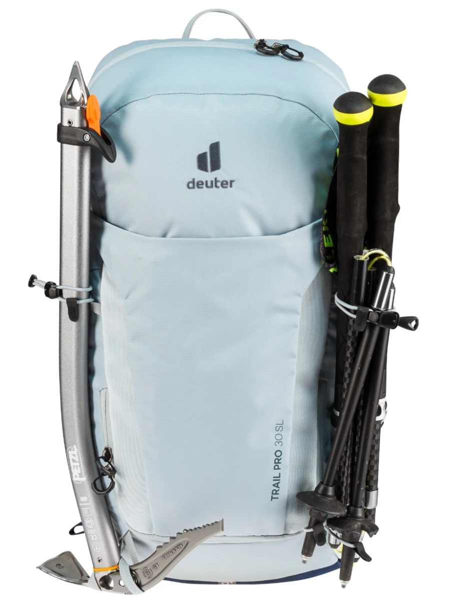 Deuter Trail Pro 30 SL: dámský batoh o objemu 30 litrů vhodný pro turistiku. Hlavní komora je dobře přístupná z vrchu, přes rozměrný otvor na zip. Zádový systém nabízí vysoký komfort a umožňuje odvětrávání. Zádový systém je kratší, a je tak přizpůsobený drobné dámské postavě. Zádová výztuha z lehké pružné oceli vám pomůže rozložit váhu a zpevnit záda.