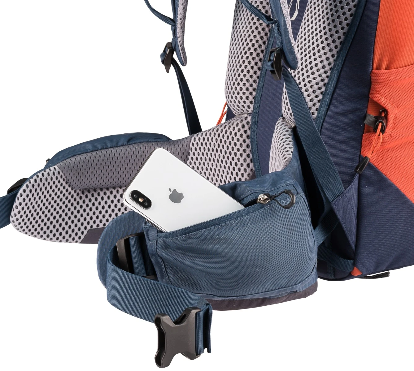 Batoh nabízí dostatek úložného prostoru v hlavní kapse, která je dobře přístupná jak z vrchní strany, tak pomocí zipu na přední straně. Strečové boční kapsy dobře poslouží na uložení láhve s vodou. Na přední straně tohoto lezeckého batohu najdete výklopnou pružnou kapsu, která se perfektně hodí na uložení lezecké přilby.