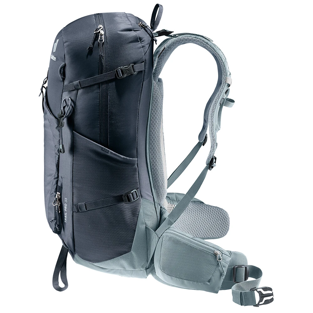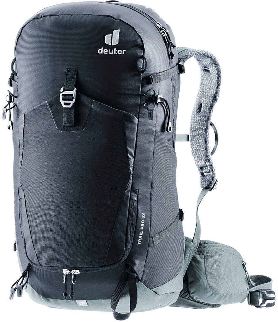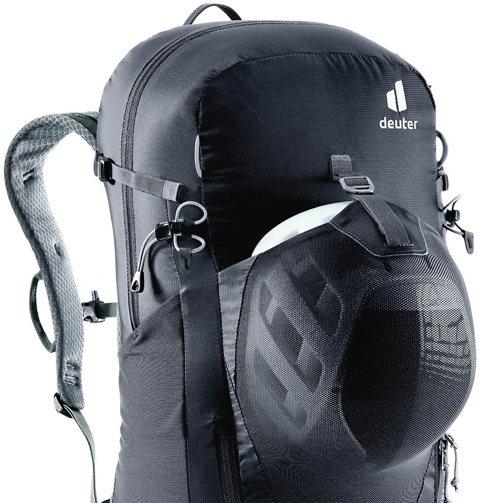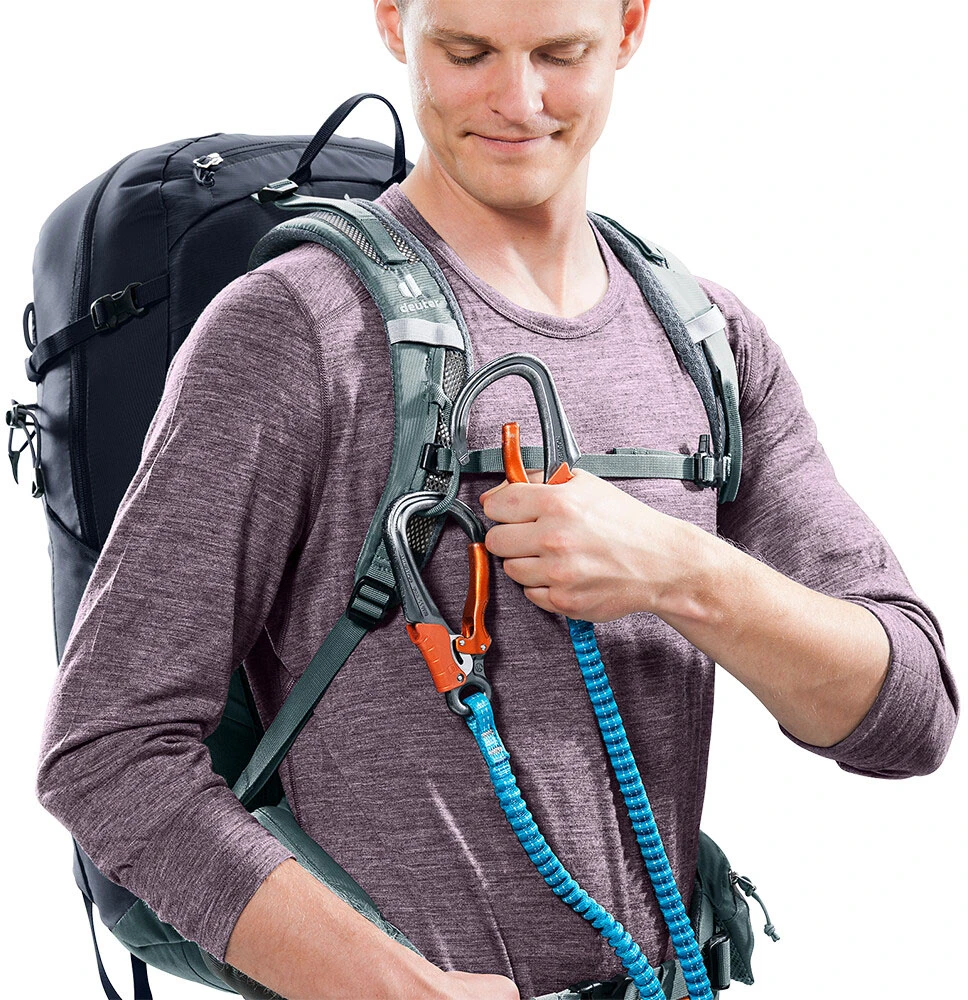 Deuter Trail Pro 33 L: dvoukomorový batoh o objemu 33 litrů. Hlavní komora je dostatečné prostorná na oblečení a další vybavení a do spodní menší komory můžete dát spacák nebo vařič s kartuší. Obě komory jsou na zip. Zádový systém deuter Airstripes zajistí prodění vzduchu, záda se pak tolik nepotí a zůstávají v suchu. Ramenní popruhy mají oka pro přichycení karabin, via ferrata set tak budeme mít stále po ruce.