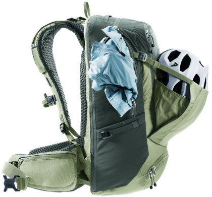 U batohu jistě oceníte dostatek úložného prostoru, jak v hlavní kapse, tak v menší přední. Přední kapsa je dostatečně prostorná pro uložení načiní potřebného na kolo. Díky zorganizovaným kapsičkám, pak budete mít vše přehledně po ruce. Hlavní velká kapsa batohu je plně sklopná, a její součástí je také elastická přihrádka na hydrovak o objemu 3 litry. Součástí je také pláštěnka a integrovaná síťka na cyklistickou helmu, která je uložená v kapse na dně batohu. Stačí rozepnout zip, vytáhnout a nastavit požadovanou velikost.