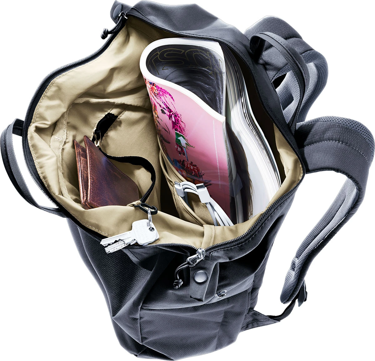 Deuter Vista: je malý, městský batoh vyrobený z odolného voděodolného materiálu. Má polstrovaná záda a ramenní popruhy, kapsu na lejstra a sešity, kapsu na cennosti, boční kapsu na zip. Batoh má horní plnění pro snadný přístup k věcem.