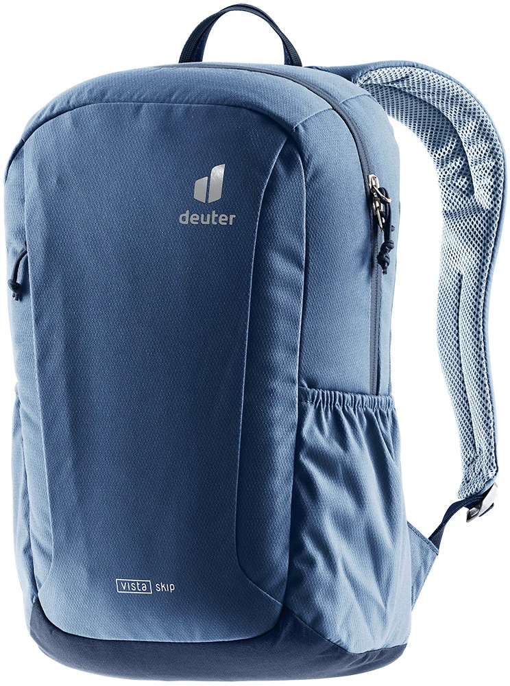 Deuter Vista Skip 14: je městský batoh malé velikosti (14 litrů), který je vyrobený z odolného voděodolného materiálu. Má polstrovaná záda a ramenní popruhy, kapsu na lejstra a sešity, kapsu na cennosti, dvě boční kapsy.