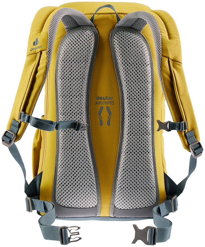 Deuter Walker 24: batoh vhodný na běžné každodenní nošení, je lehký a díky vyztuženým, anatomicky tvarovaným panelům na zádech a polstrovaným ramenním popruhům je i velmi pohodlný. Má přední kapsu s organizérem, dvě boční kapsy, kapsu na dokumenty, kapsa na notebook a díky většímu otvoru je obsah v batohu dostatečně přehledný.