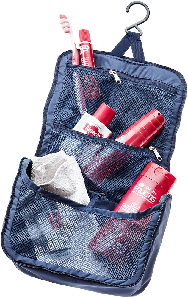 Deuter Wash Center Lite I: skládací toaletní taška na cestování a treky v přírodě. Tašku jednoduše rozbalíte, zavěsíte, použijete, zabalíte a schováte do batohu.