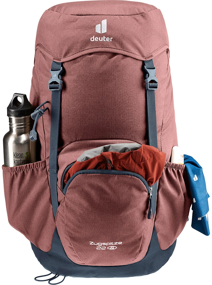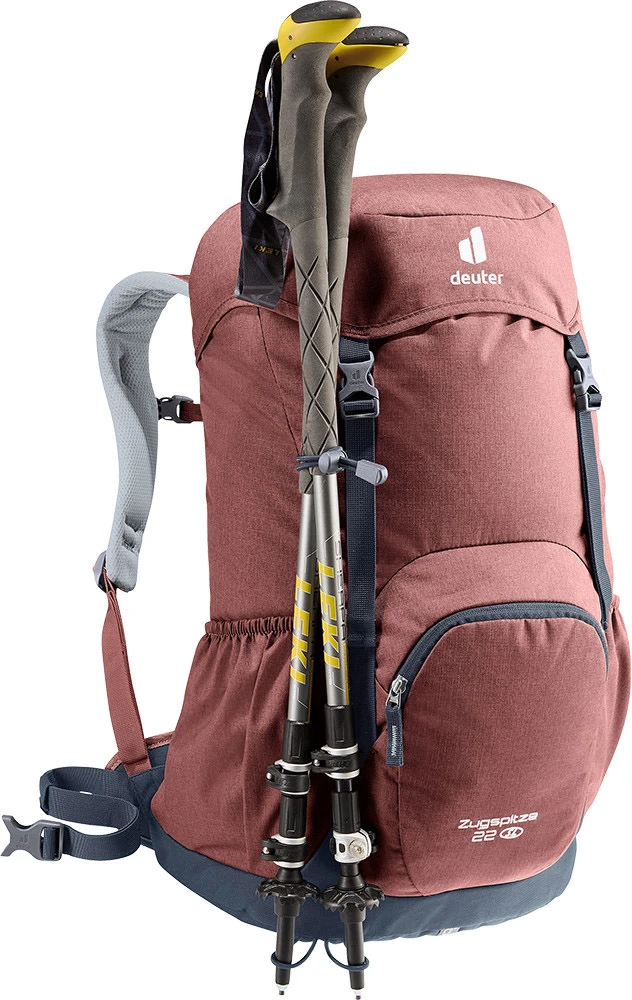 Deuter Zugspitze 22 SL: dámský turistický batoh o objemu 22 litru v retro stylu ale s moderními prvky. Hodí se na jednodenní turistiku. Batoh má zádový systém Aircomfort tvořený síťkou, poskytuje vám maximum ventilace, záda se tolik nepotí. Nechybí bederní pás, hrudní pás a polstrované anatomicky tvarované ramenní popruhy.