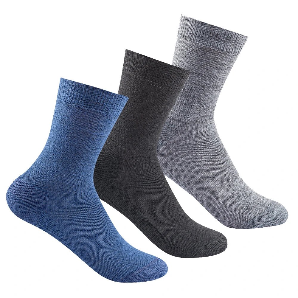 Devold Daily Merino Medium Sock 3-pack: jsou středně silné vlněné funkční ponožky pro celoroční nošení i turistické aktivity. Jsou vyrobené ze směsi Merino vlny a syntetiky.