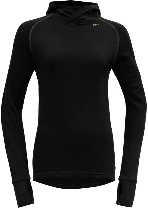 Dámské merino tričko s kapucí Devold Expedition Hoodie Woman – velice teplé, vlněné dámské tričko z Merino vlny s kapucí. Má návleky na ruce s otvorem na palec do mrazivého počasí. Je ideální pro sjezdové lyžaře nebo lezce ledů a pro zmrzlíky. Je ideální pro teploty 10 až –20 stupnů.
