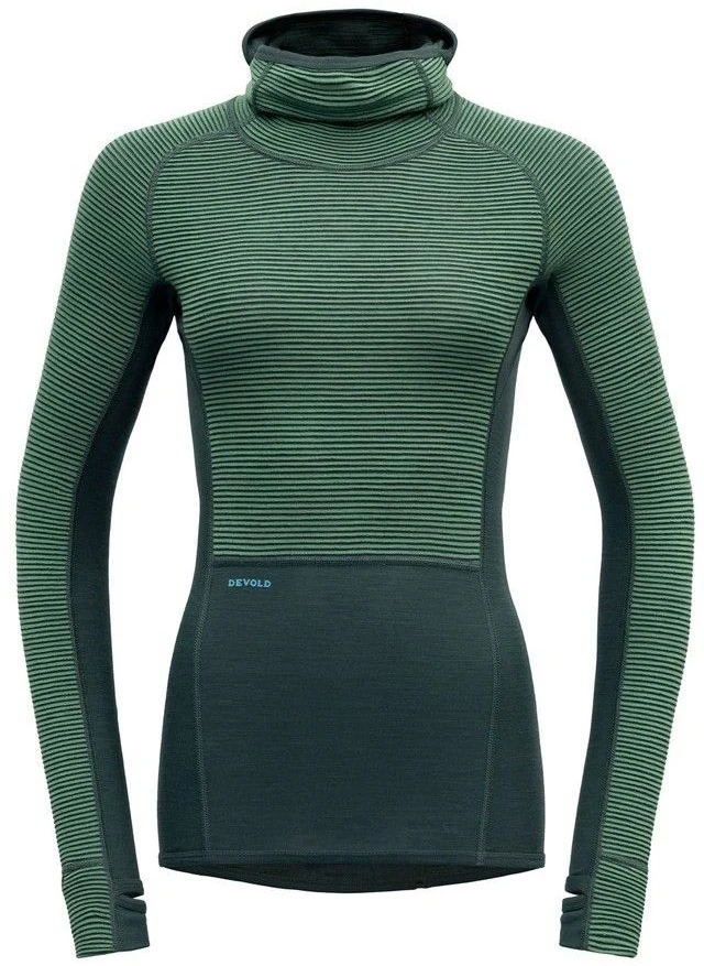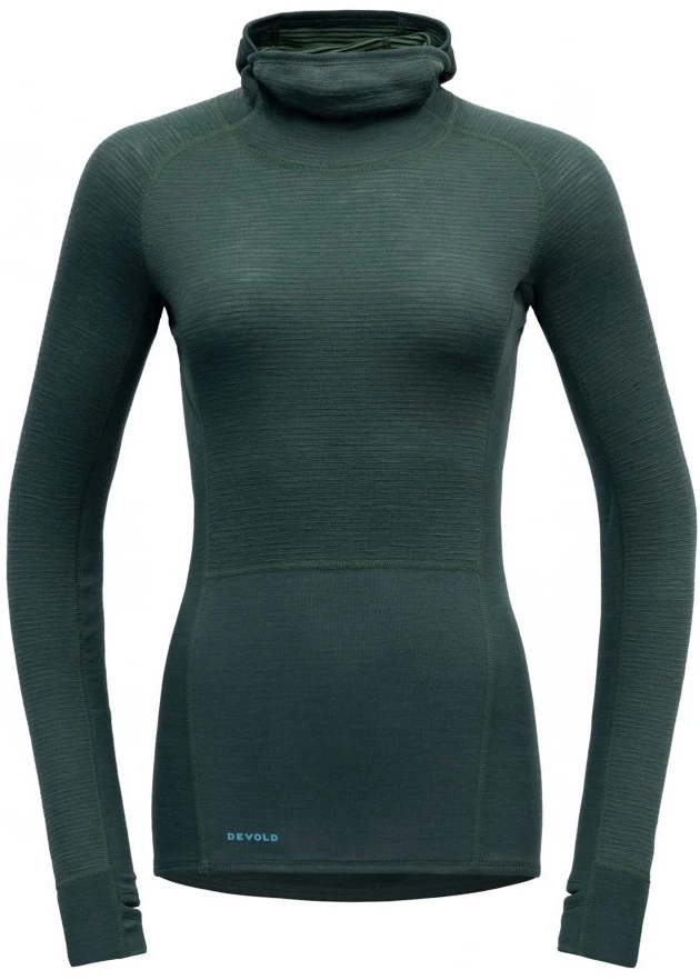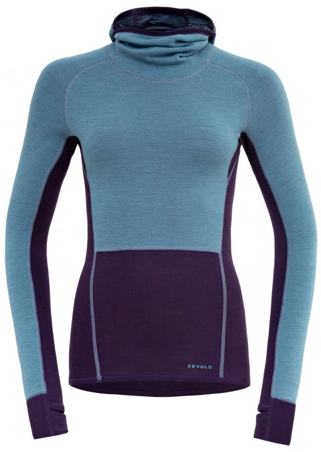 Devold Tuvegga Merino Hoodie Woman: je oboustranné funkční vlněné dámské tričko s kapucí, které je vyrobené z jemné merino vlny. Tričko je vyrobeno z kombinace 3 rozdílných úpletů. Síťovaný Wool Mesh, klasický žebrovaný úplet a oboustranný 3D úplet. Síťovaný rychleschnoucí wool mesh úplet, najdete v nejvíce potivých oblastech těla, jako jsou záda a podpaží, kde je potřeba hodně prodyšnosti.