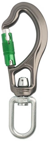DMM Sidewinder Locksafe – duralová karabina s obrtlíkem. Spojka se otáčí, proto nezpůsobuje kroucení lana. Zámek karabiny je tripple lock.