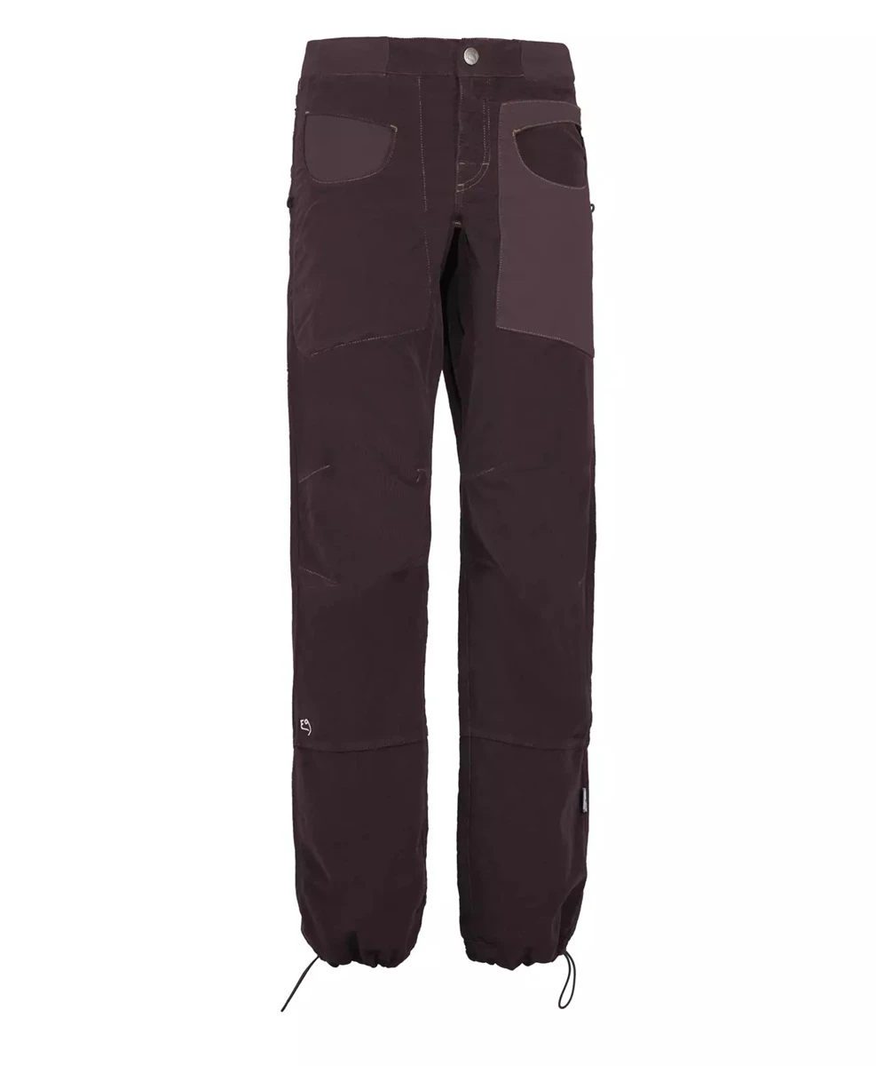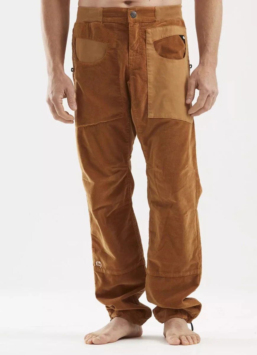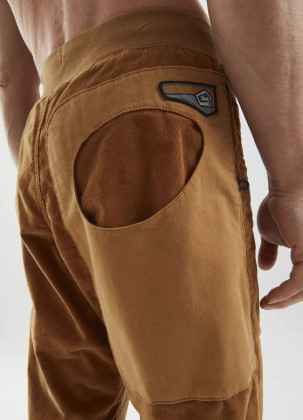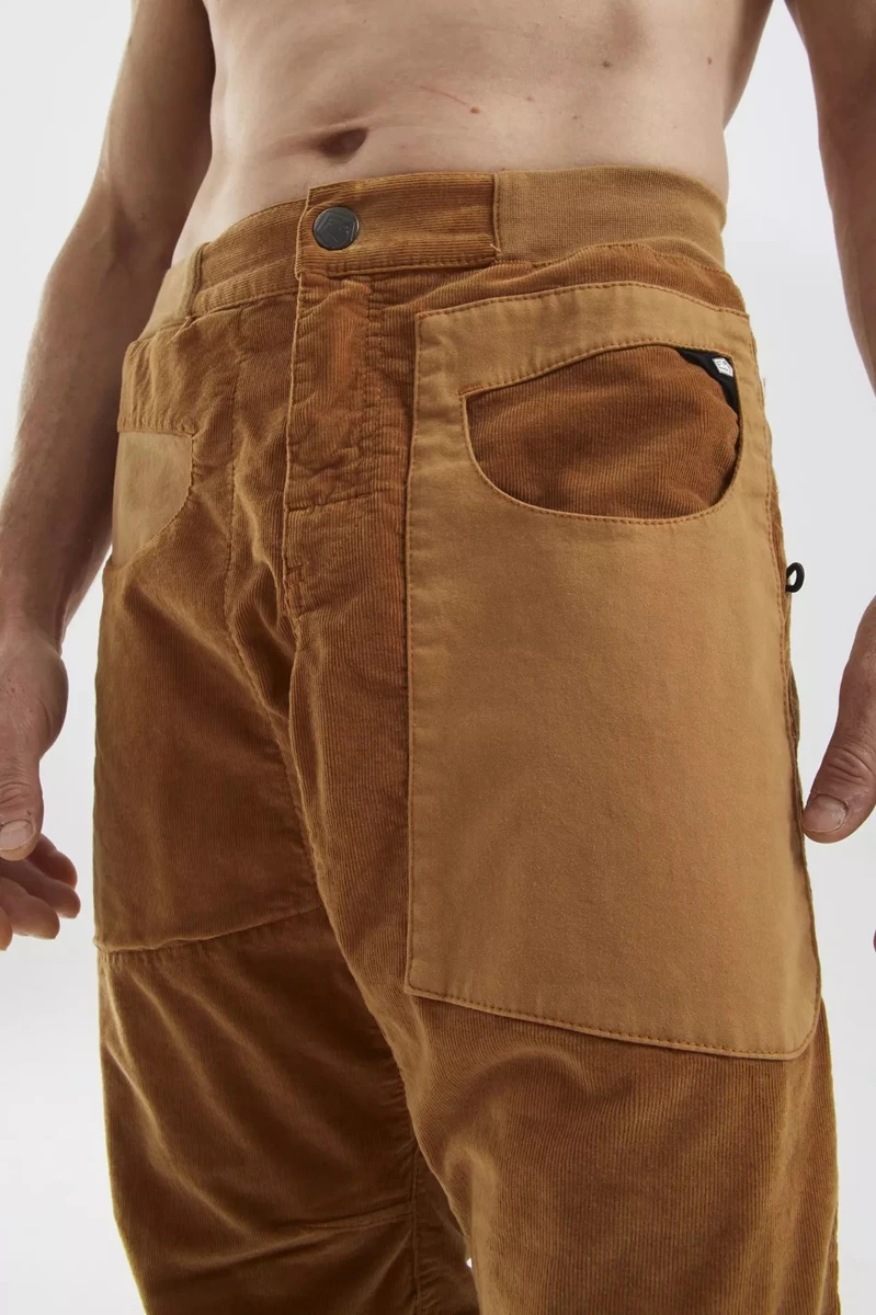 Moderní pánské kalhoty pohodlného střihu BLAT1 VS PANTS jsou vyrobeny z manšestrové tkaniny z 98% z organické bavlny a 2% z elastanu. Kalhoty mají elastický pas, nastavitelný spodní lem kalhot a poutka na kartáček na obou stranách. Kapsy mají oválný vstup, jsou v kontrastním provedení (jiná tkanina) a na zadní kapse je nášivka s logem E9. Jsou vyrobeny 100% v Itálii s minimálním znečištěním životního prostředí a se zaměřením na extravagantní provedení, jedinečný design a komfort při lezení.