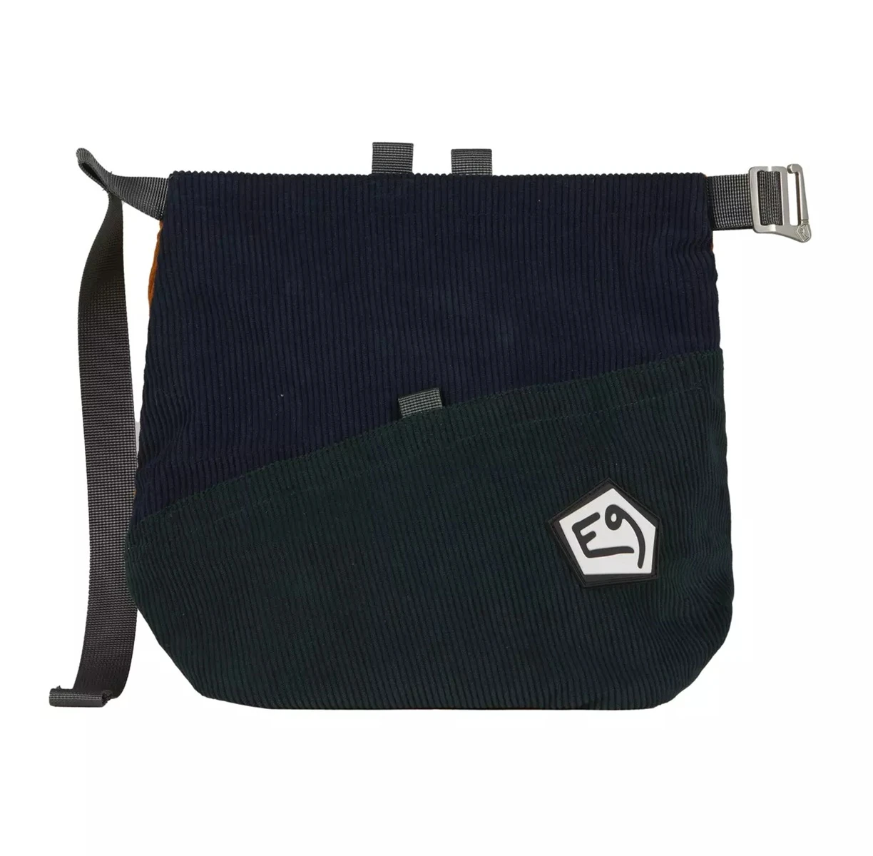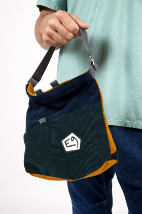 Stylový velký pytel na magnézium GULP VS pro bouldristy, z vnější strany vyroben z manšestrové látky ze 100% organické bavlny. Vnitřek z polyesteru. Má hezký tříbarevný design a vyšité logo E9. Pytel se uzavírá pomocí magnetických pásků a má popruh s kovovou sponou na pohodlné přenášení. Na přední straně nalezneš kapsu na suchý zip a na zadní straně dvě poutka na kartáček.