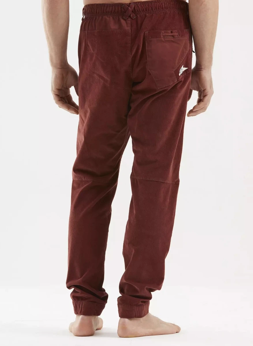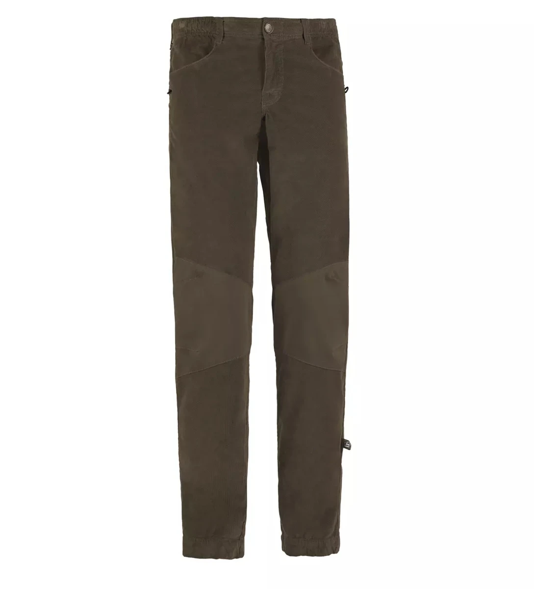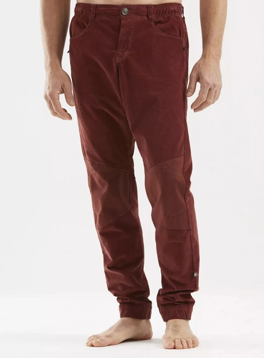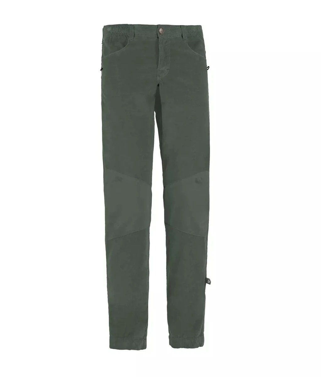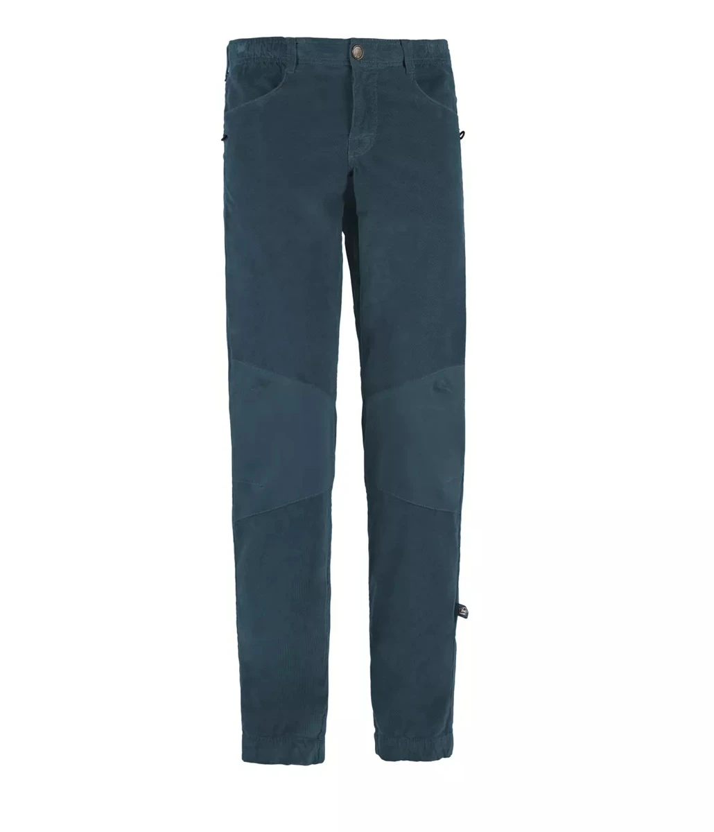 Moderní pánské kalhoty úzkého střihu GUSKY PANTS jsou vyrobeny ze sametové látky z 98% organické bavlny a 2% elastanu. Kalhoty mají elastický pás se zapínáním, zúžený spodní lem nohavic, kontrastní kolena a poutka na kartáček na obou stranách. Mají klasické kapsy na ruce a jednu zadní designovou kapsu s vyšitým logem E9. Jsou vyrobeny 100% v Itálii s minimalním znečištěním životního prostředí a se zaměřením na extravagantní provedení, jedinečný design a komfort při lezení.