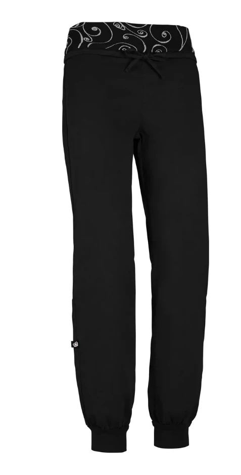 E9 W-Hit 2.1: Moderní a pohodlné kalhoty, určené pro všechny milovnice přírody, hor a lezení. Tyto dámské kalhoty mají elastický spodní lem nohavic, široký elastický pas, a samostatný tunýlek se šňůrkou na stahování. Jsou vyrobeny 100% v Itálii s minimálním znečištěním životního prostředí z 61% lyocellu 36% organické bavlny a 3% elastanu.