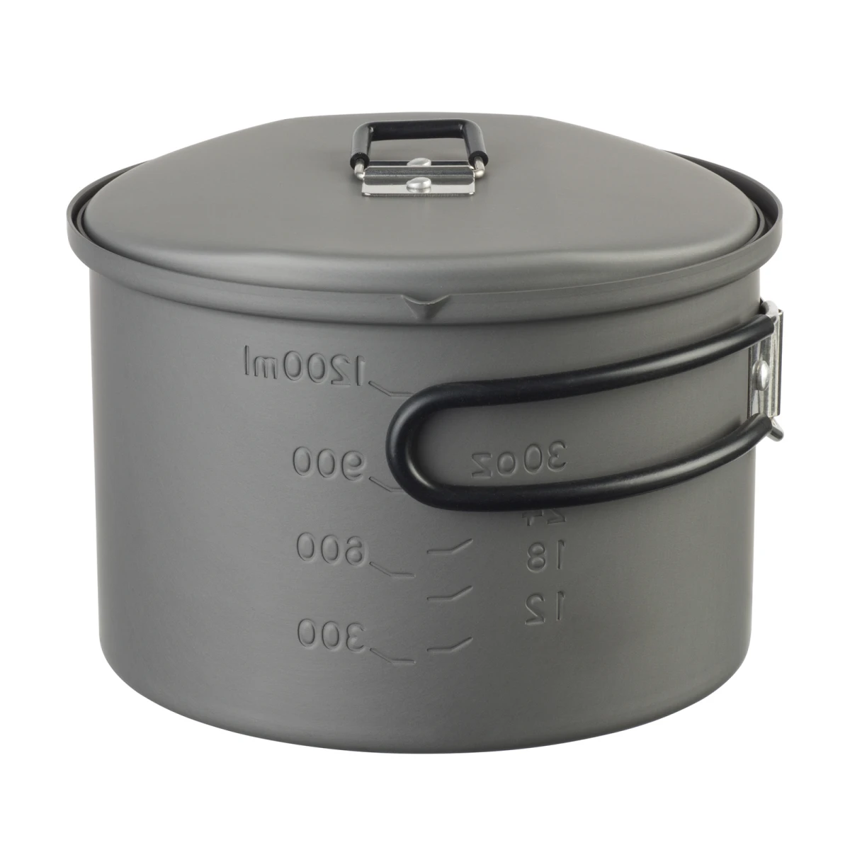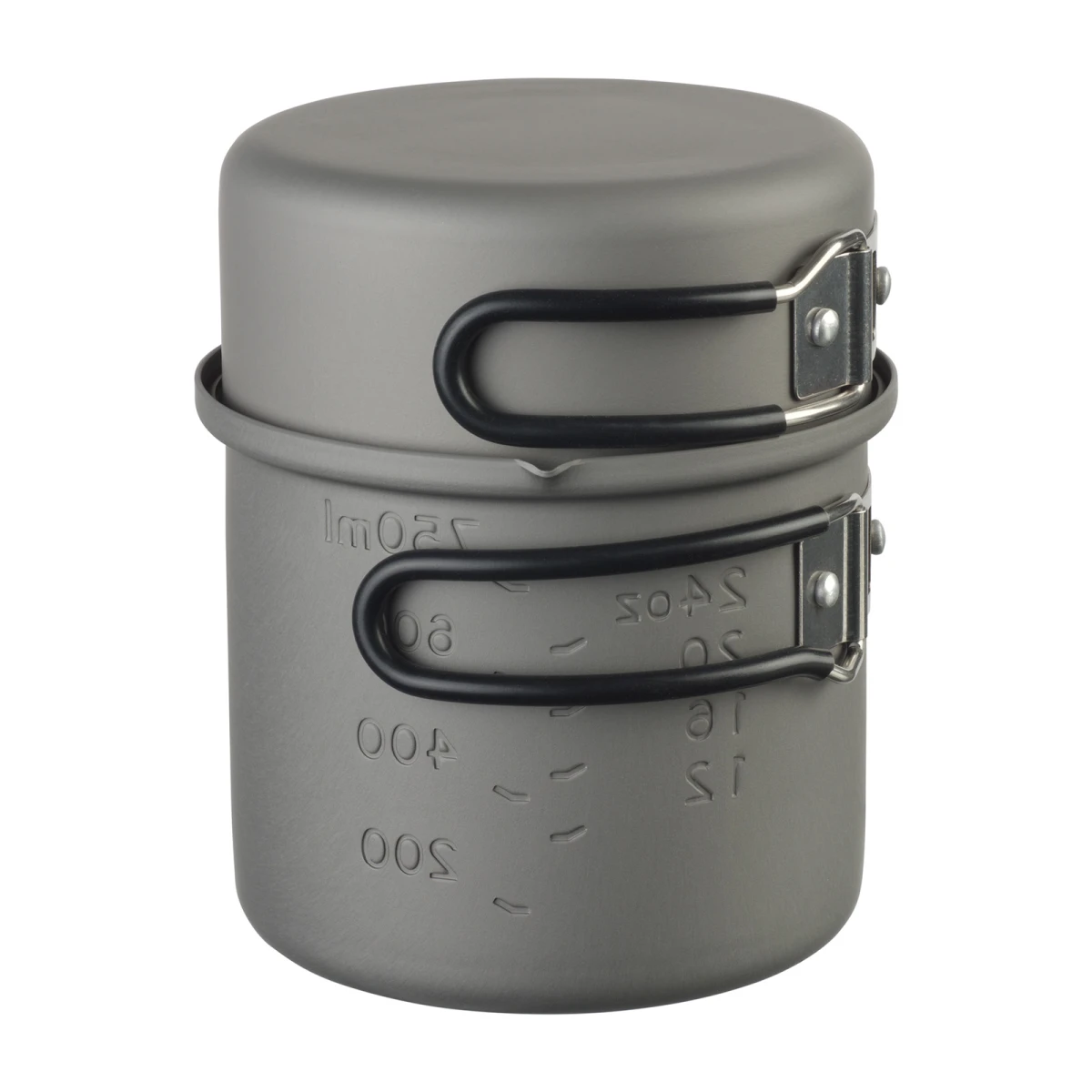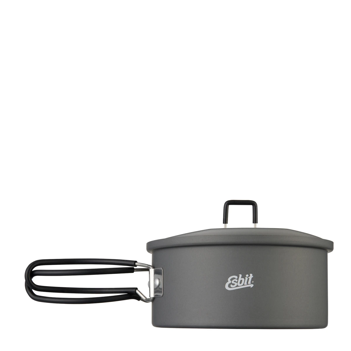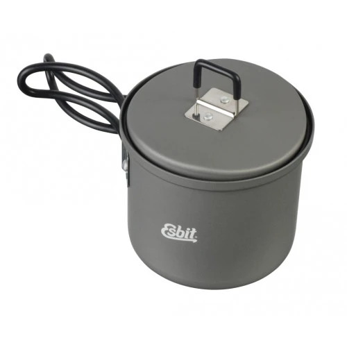 Esbit Aluminum pot: Ultralehký hrnec, vyrobený z extrémně lehkého, a tvrdého eloxovaného hliníku s pokličkou je ideální na čaj, ohřev vody na zalití dehydrovaných jídel a přípravu ranních kaší. Na výběr máte hned z několika velikostí. Rukojeti z nerezové oceli lze složit kolem hrnců, aby se ušetřilo místo při přepravě. Na vnitřní straně má měřící rysky, a součástí balení je i skladovací vak. Poklice od hrnců lze zavěsit i na okraj hrnců.