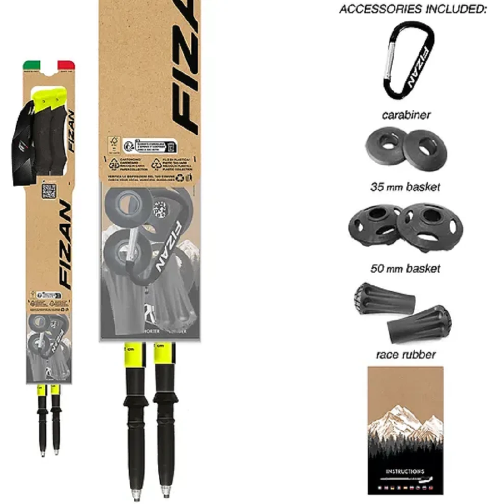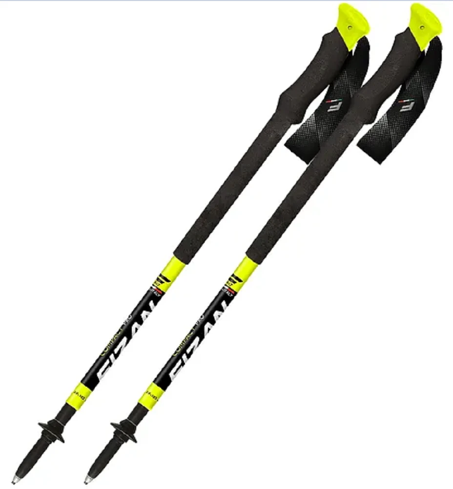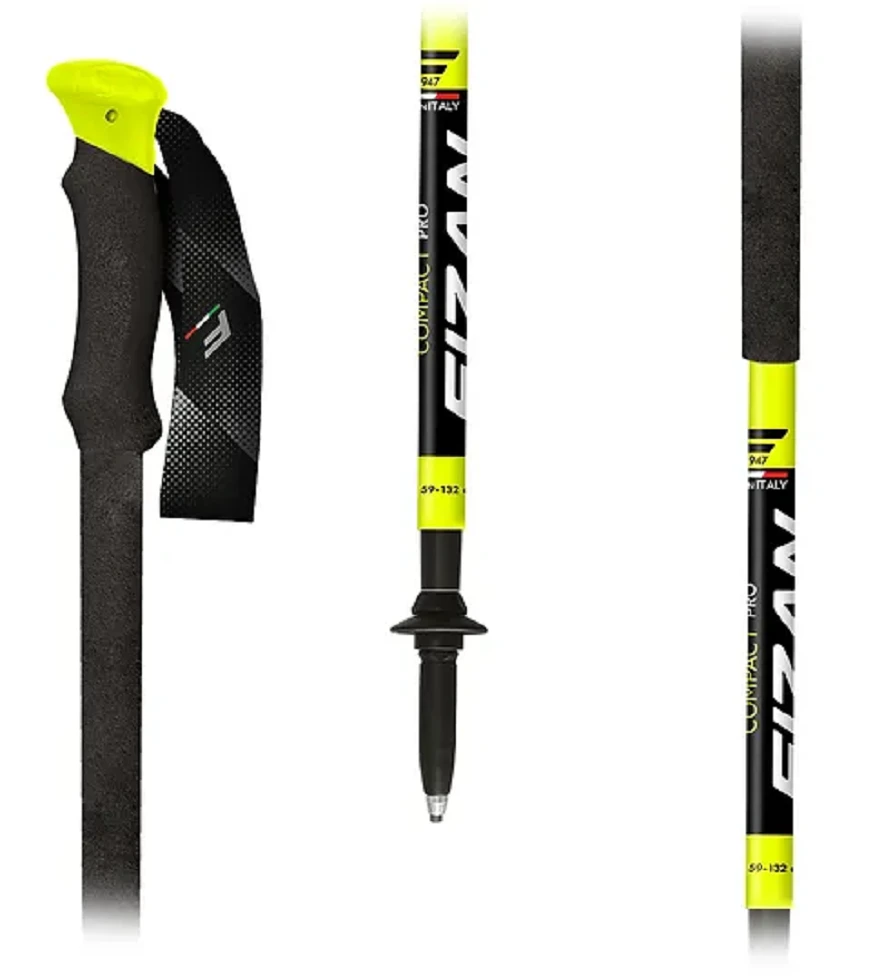 Lehké trekové hole Fizan Compact Pro – turistické hůlky s prodlouženou rukojetí z Eva pěny. Hole jsou teleskopické a hodí se pro trekking a trail running. Mají hliníkový hrot s karbidovou špičkou, nastavitelné poutko, 50 mm talířek, 35 mm talířek, ochranný gumový kryt hrotu špice.