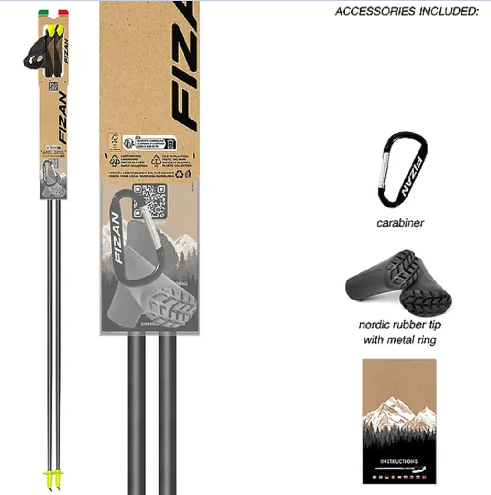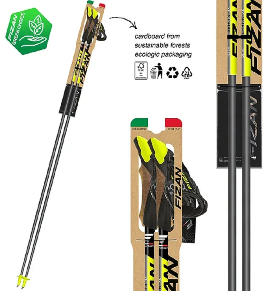 Fizan NW Carbon 3K: jsou nordic walkingové hůlky s pevnou délkou, které jsou určené pro trailové běhy nebo nw chůzi. Jsou vyrobené z kombinace hliníkové slitiny a karbonového kompozitu (80%), který jednak lépe tlumí nárazy a jednak i je tuhý pro co nejlepší odraz.
