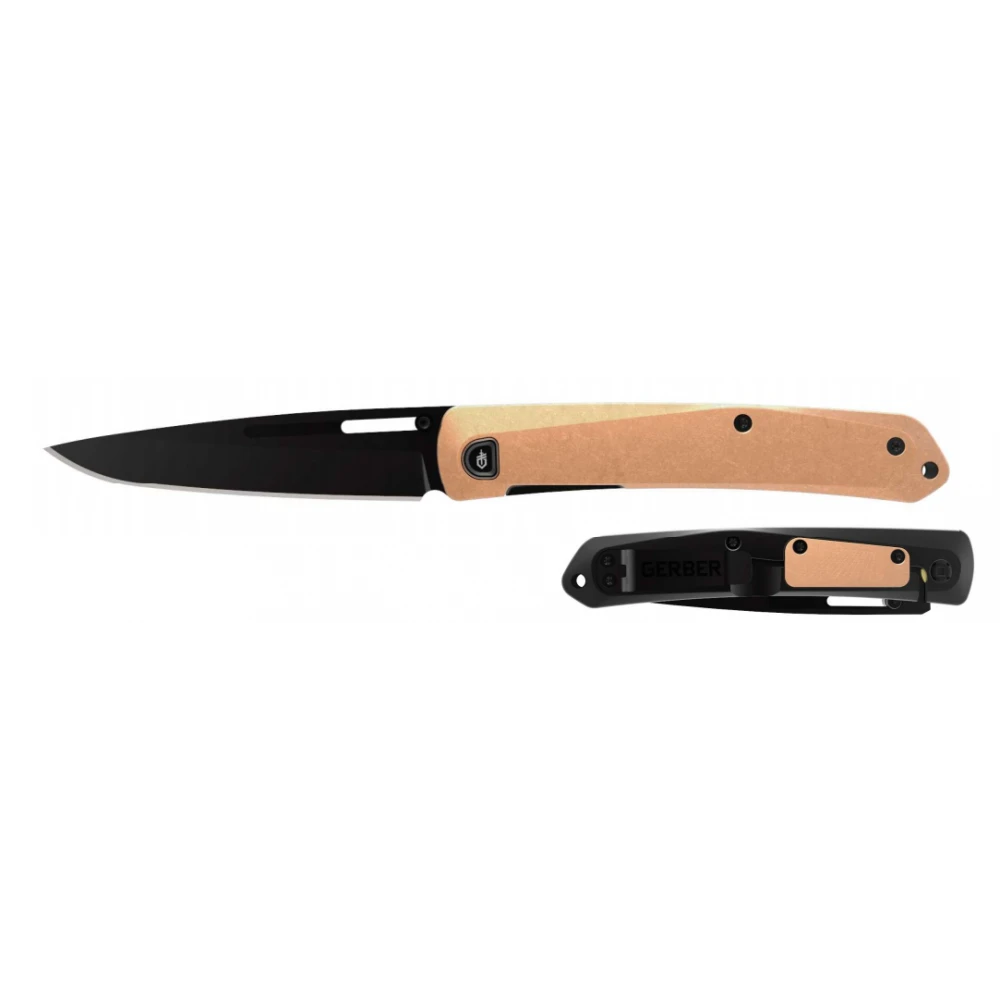 Gerber Affinity Copper: elegantní zavírací EDC nůž, který dokonale skloubil elegantní design a funkčnost. Dociluje tím kombinací kvalitních materiálů použitých na výrobu, a použitím černé a měděné barevné kombinace. Tím vám zaručí že bude nejen dobře vypadat, ale že se stane také skvělým pomocníkem na výpravy do přírody, nebo běžné používání.