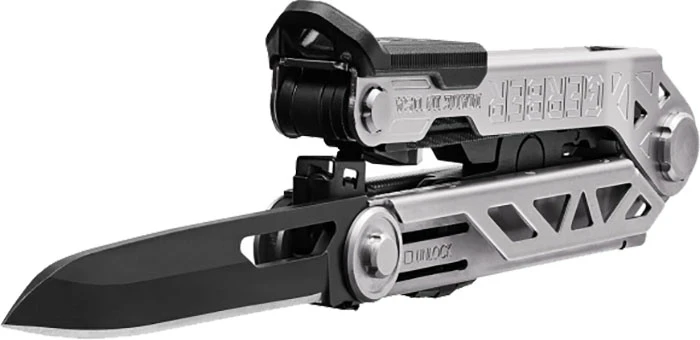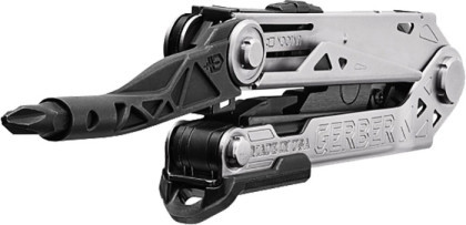 Nástroje: Kleště needlenose / Nůž s hladkým ostřím / Nůž se zubatým ostřím / Otvírák na lahve / Vytahovák hřebíků / Pilník / Pravítko / Páčidlo / Šídlo / Křížový šroubovák / Malý plochý šroubovák / Klasické kleště / Výměnné karbidové břity / Magnetický nástavec na bity