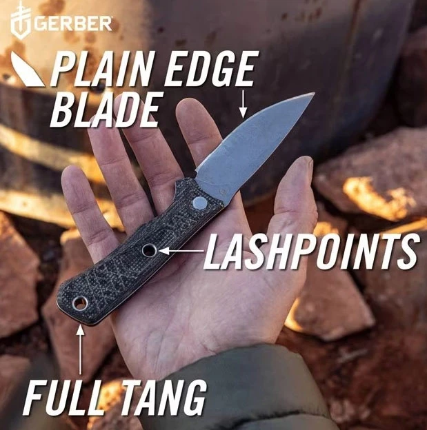 Gerber Convoy – je nůž s pevnou čepelí, který se hodí pro kempování, bushcraft aktivity a samozřejmě i pro armádu. Čepel je z oceli 440A. Má fulltang konstrukci, která mu dává vysokou odolnost a stabilitu. Dá se používat na výrobu třísek, sekání, štípání.