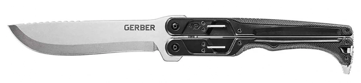 Gerber Doubledown, černá + stonewash 30-001535: je menší zavírací mačeta nebo větší nůž. Konstrukce je tkz. motýlek - balisong. Díky tomu je na svojí velikost super skladný