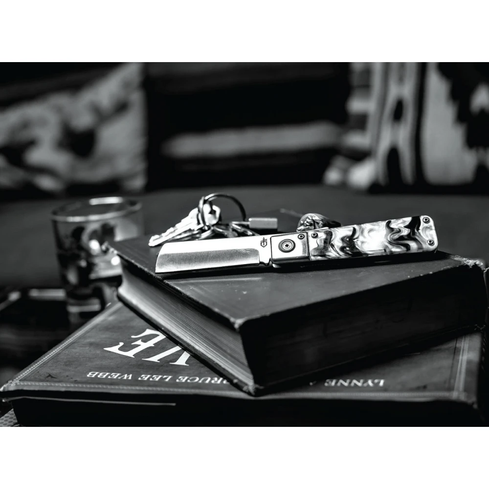 Gerber Jukebox Clip Folding Knife - Marble: Stylový zavírací nůž, který svým stylem připomíná klasickou břitvu, kterou si můžete pamatovat ze starých kadeřnických salónů a Barber shopů. Stále se ale jedná o plně funkční kapesní nůž, který si jistě najde místo ve vaší každodenní (EDC) výbavě.